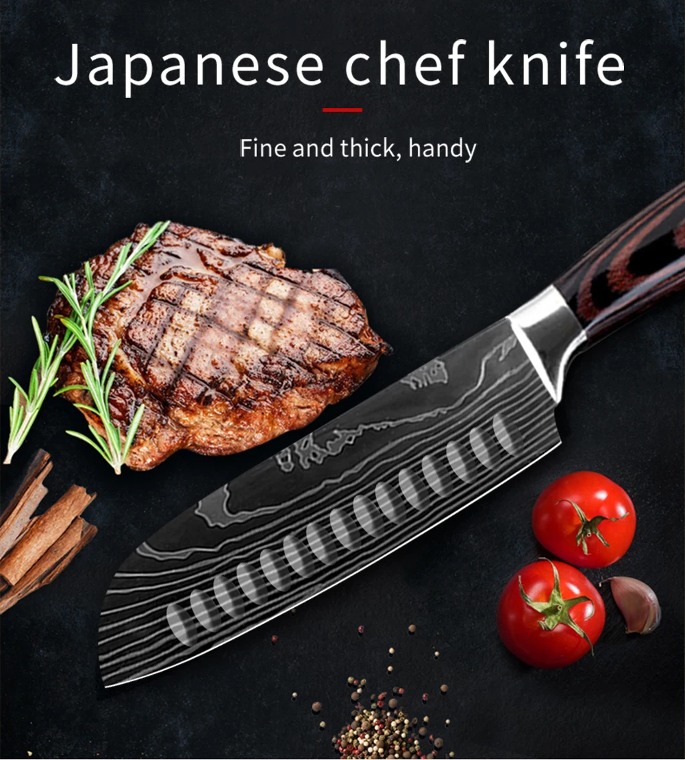 Ножи накири XYJ, 7 дюймов, из нержавеющей стали, с лазерным узором ...