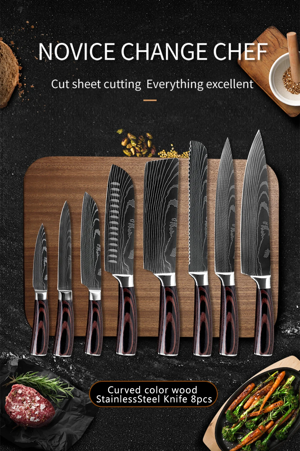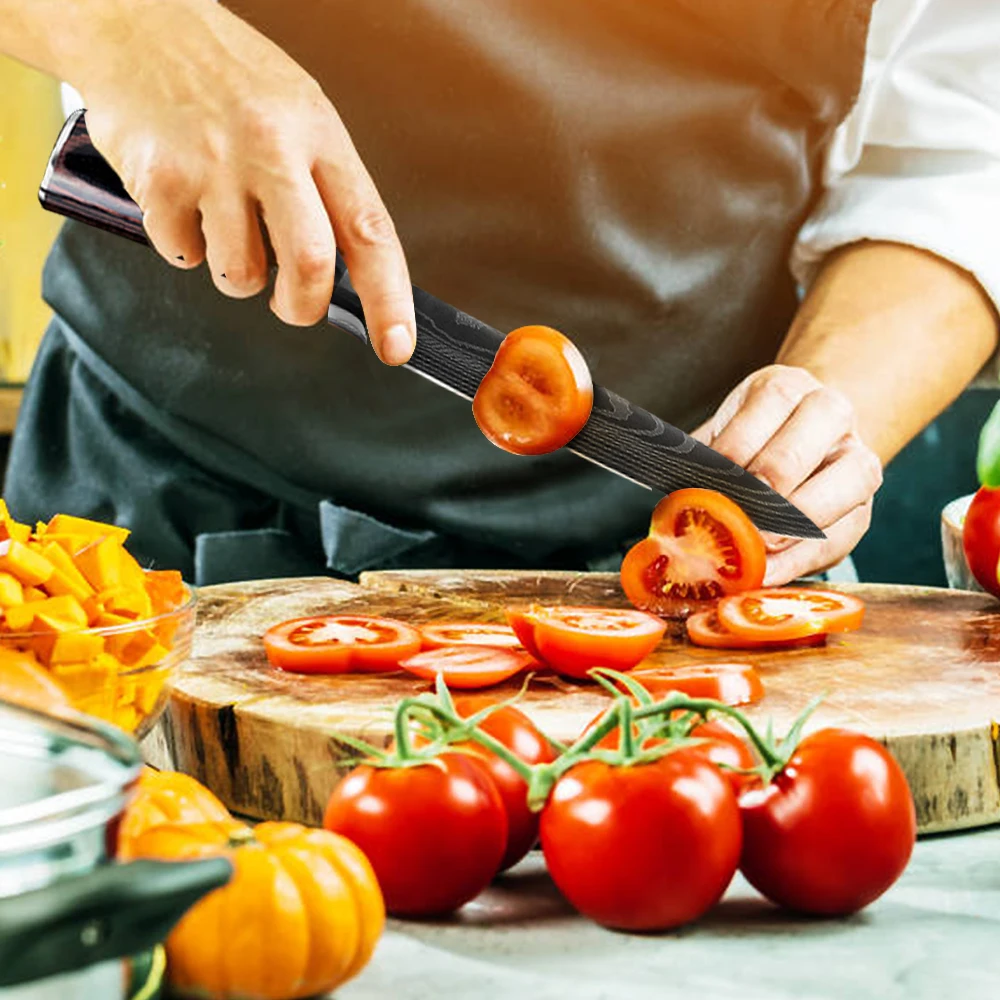 Набор японских ножей шеф-повара из нержавеющей стали с лазерным узо...