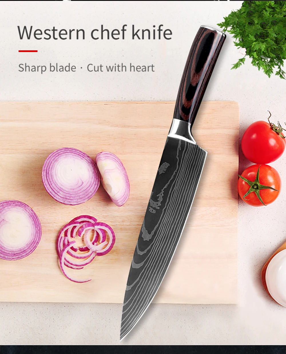 Кухонные ножи из нержавеющей стали с лазерным узором, шеф-повар сан...
