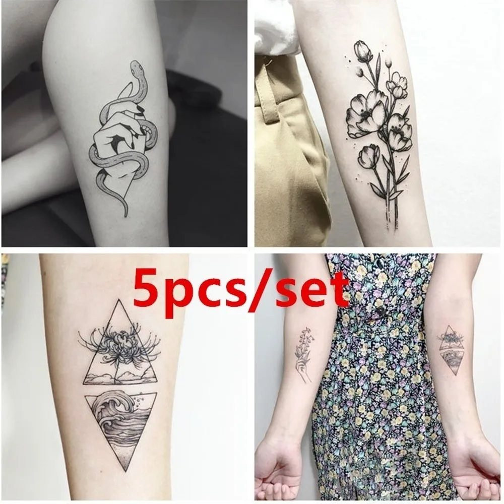 Временные татуировки "Змея", водостойкие, для мужчин и женщин, 5 шт.
