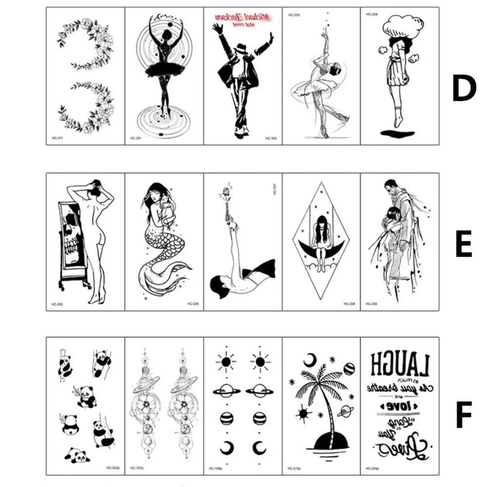 Наклейки для временных татуировок, маленькие черно-белые скетч-накл...