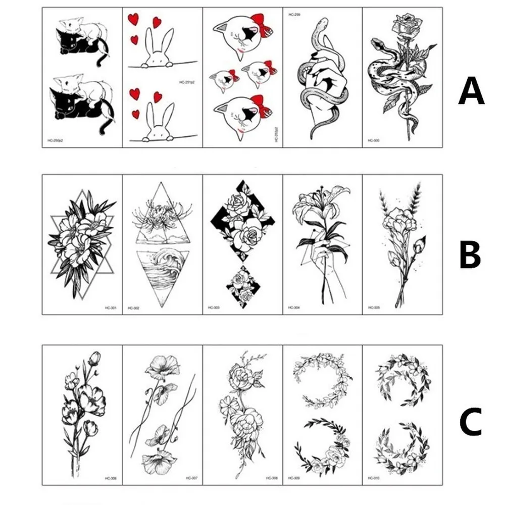 Горячая Распродажа, маленькие черные временные тату с цветком, диза...