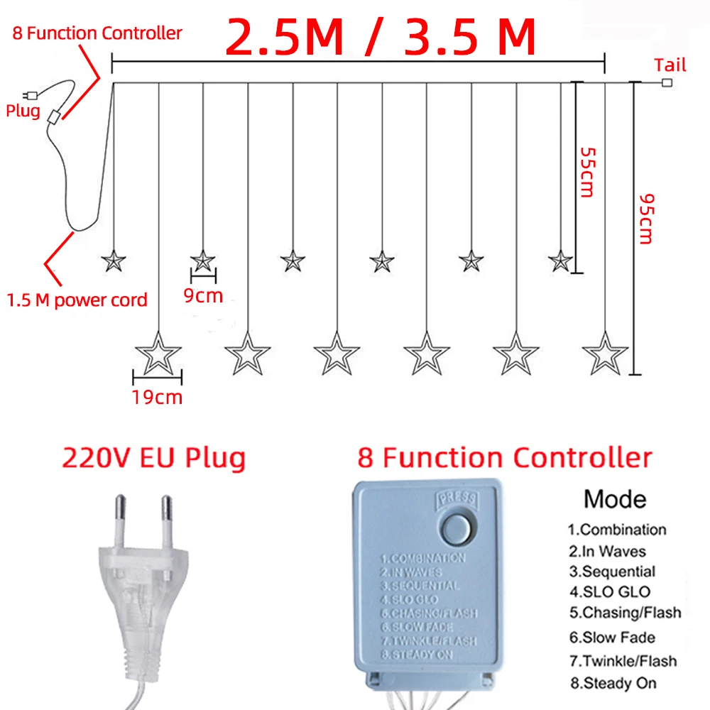 Гирлянда-занавес со звездами, 2,5 м3,5 м