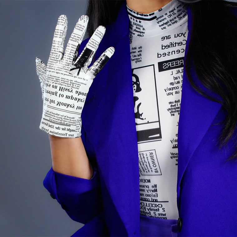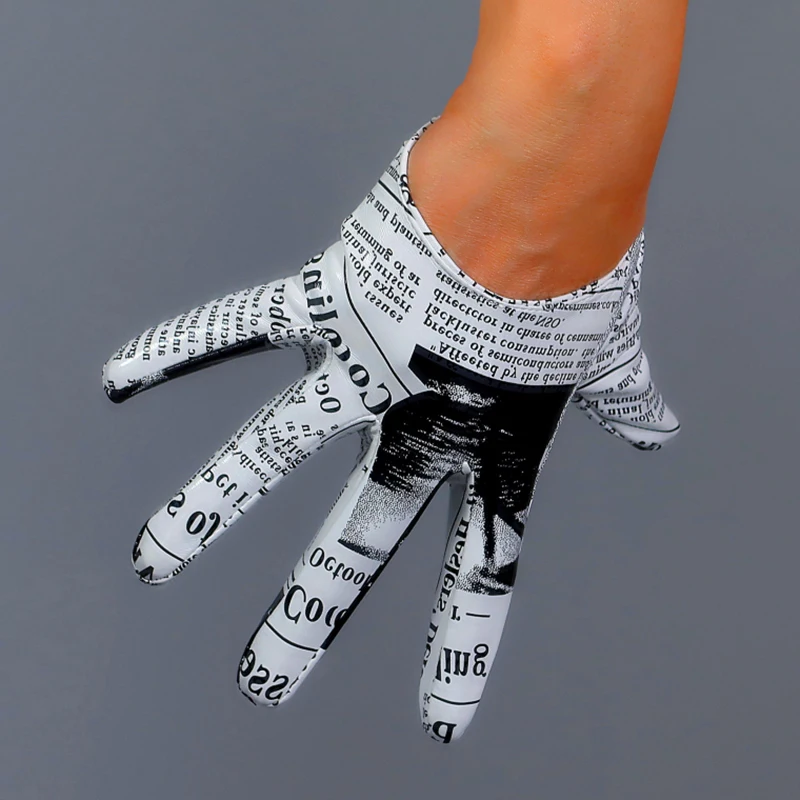 Латексные длинные перчатки из блестящей кожи PU 28 "70 см с принтом газеты черные белые контрастные женские длинные кожаные перчатки 2020 Новинка WPU214