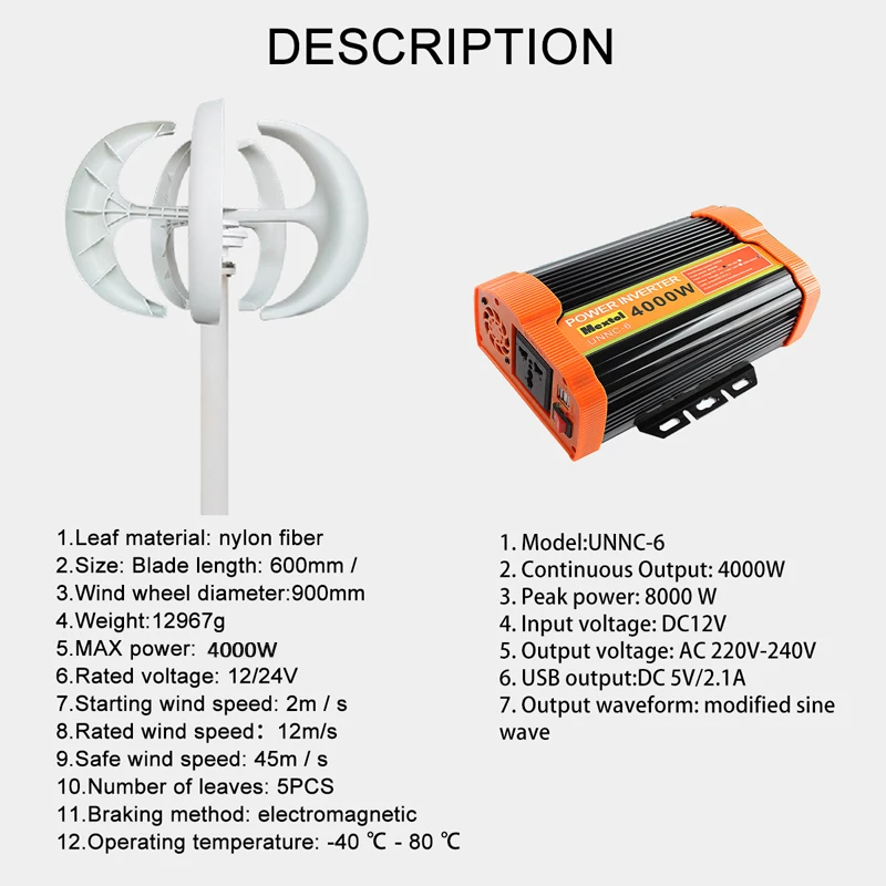 Ветряная Турбина, 5 лопастей, 4000 Вт, переменный ток, 12 В, 24 В, вертикальная ось, генератор, постоянный магнит, мотор-фонарь с контроллером для дома