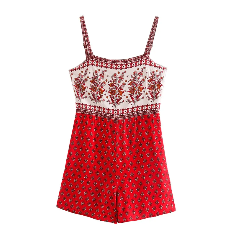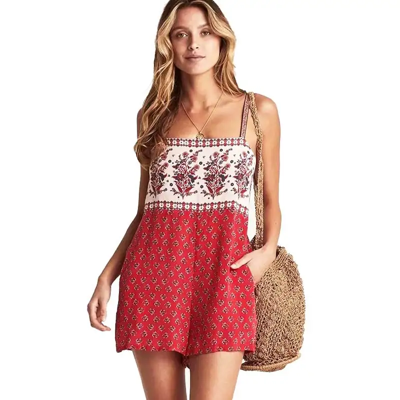 Женский богемный комбинезон с цветочным принтом, без рукавов