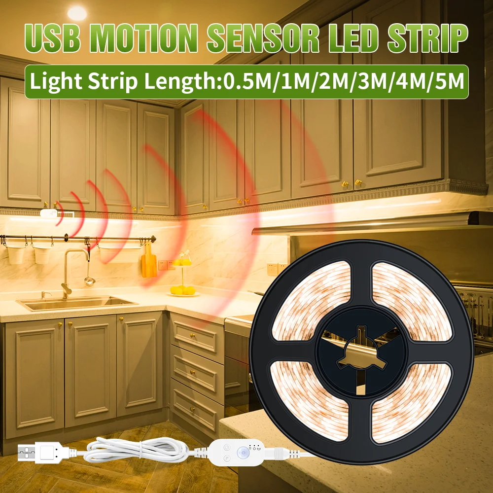USB ПИР светодиодный движения Сенсор светильник полосы Кухня светильник шкаф прикроватная лампа 5V светодиодный под кабинет ночной Светильник для шкафа Лестницы 2835SMD