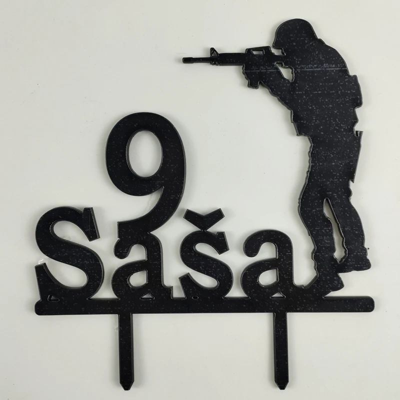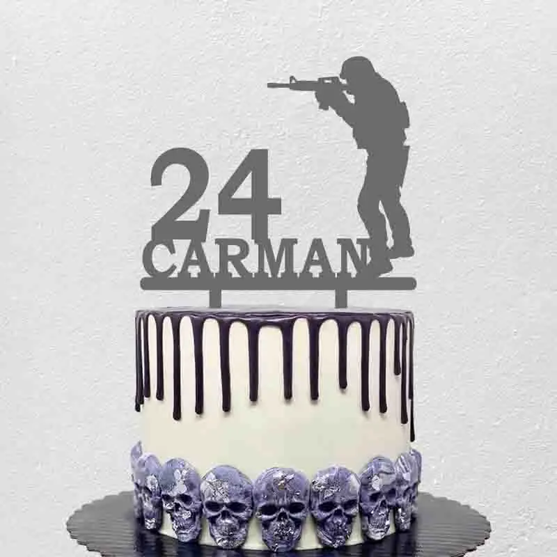 Персонализированный армейский Топпер для торта на день рождения с именем на заказ, удерживающий пистолет, топпер для торта для мальчика, украшение для торта на день рождения