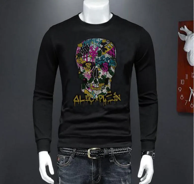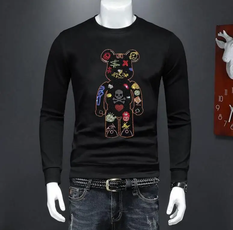 Стразы Толстовка 2020 толстовки мужские с длинным рукавом Повседневный свободный черный цвет круглый вырез спортивный пуловер