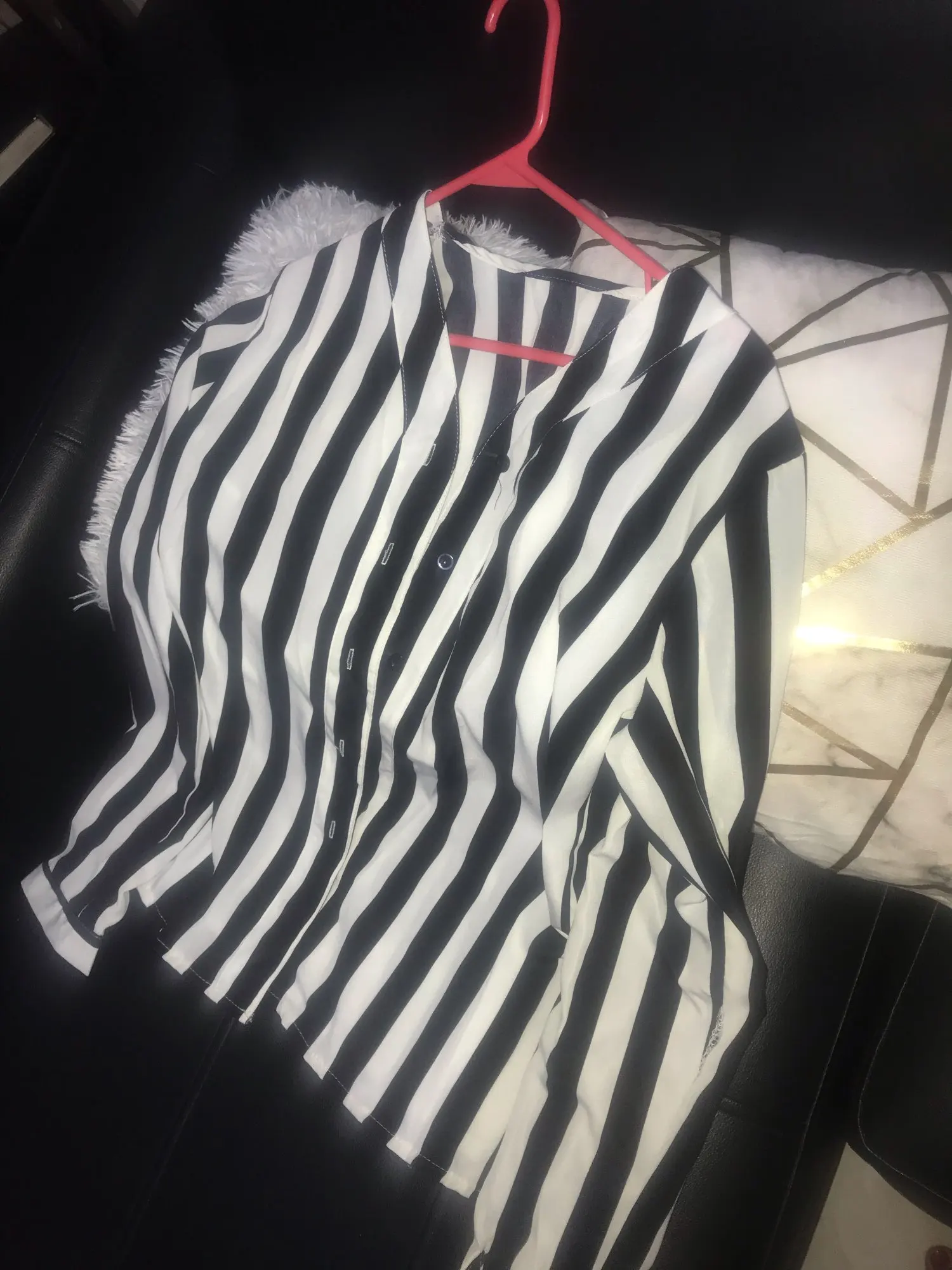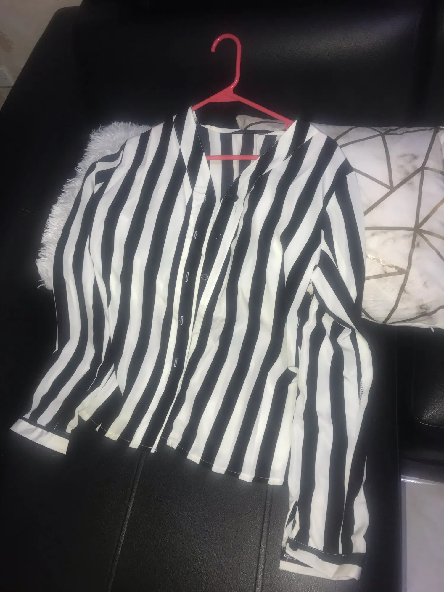 Женская рубашка в полоску, летняя, черная, белая Элегантная блузка на пуговицах с V-образным вырезом, повседневные свободные топы, винтажные Топы