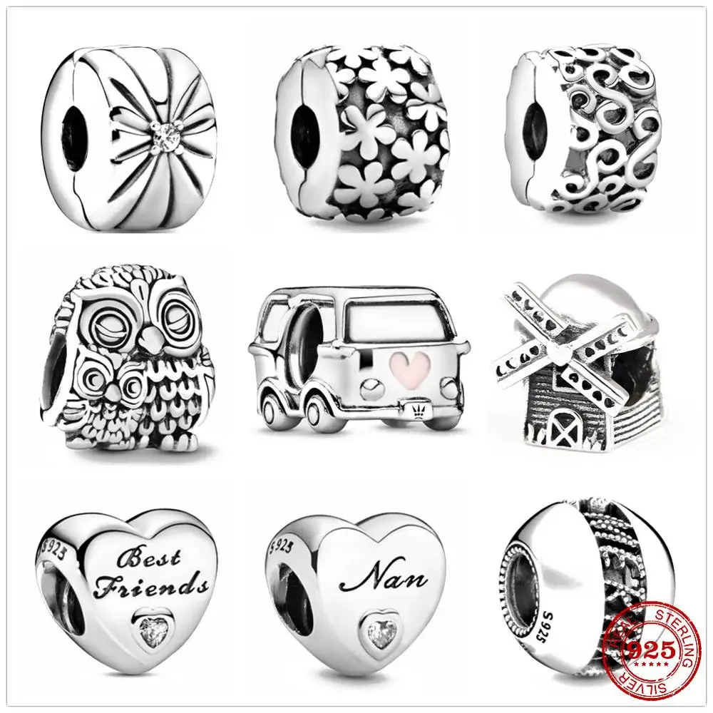 925 пробы серебро сверкающий Sunburst клип Шарм Best friend поселок Nan Сова DIY ювелирные украшения, драгоценные бусины, подходят к оригинальным браслетам Pandora, брелоки, бижутерия