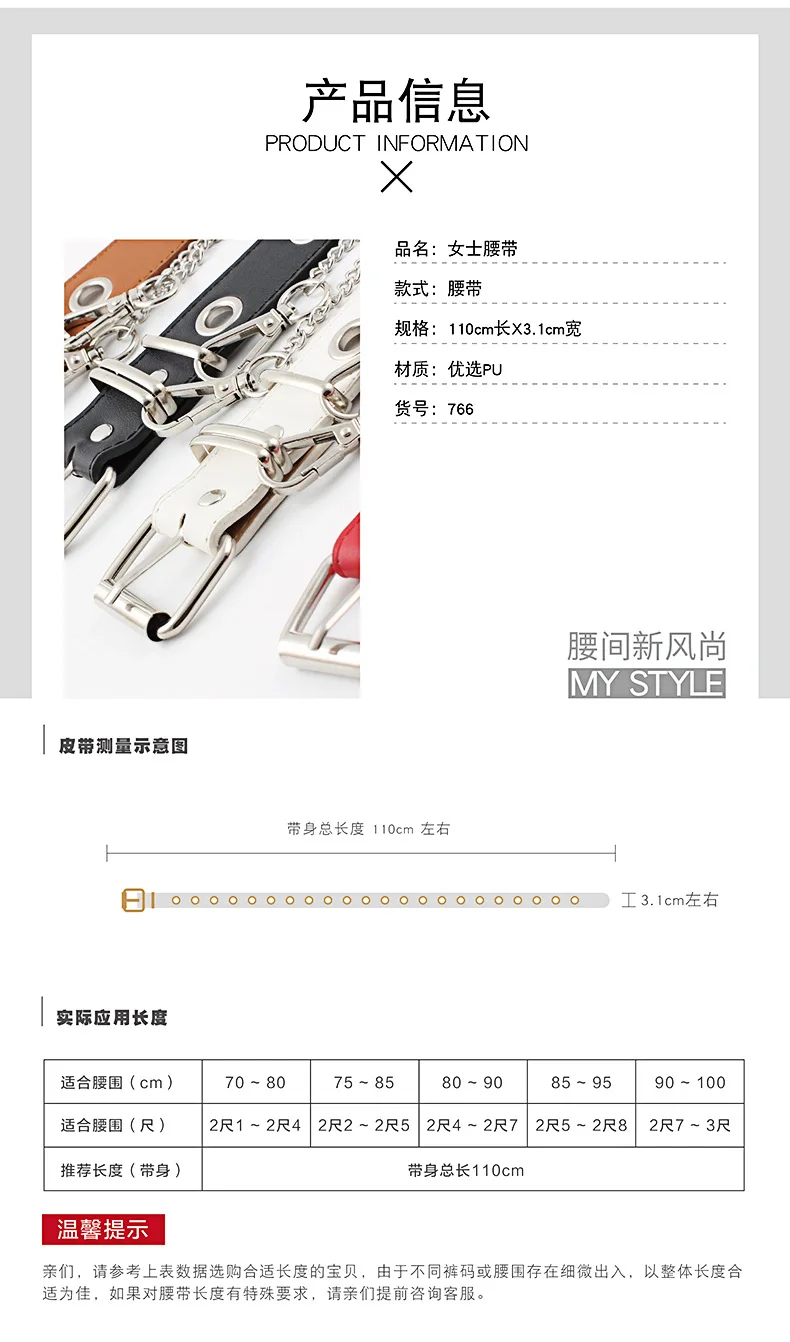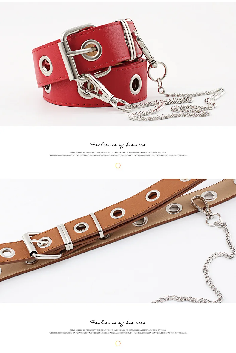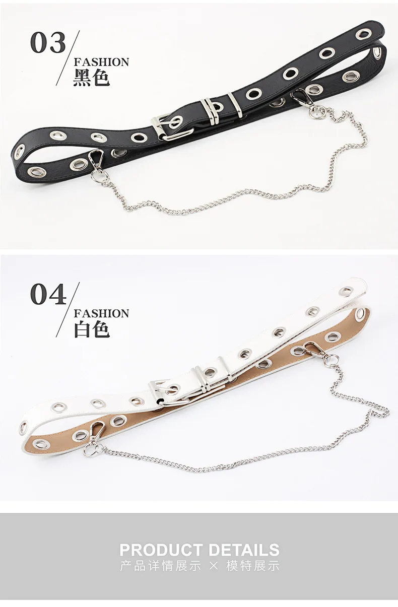 Ремень с цепочкой для ключей в стиле готика панк, ремень с пряжкой из искусственной кожи, Модный повседневный пояс для подростков P102