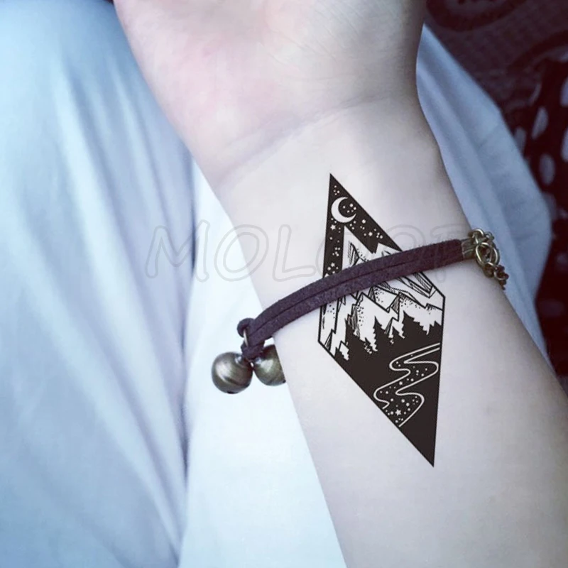 Тату-наклейка rock mountain crescent planet sun moon star Водная пе...