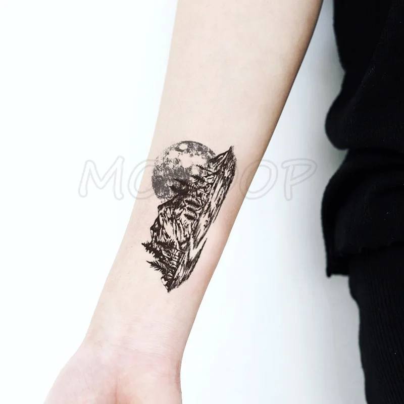 Татуировка наклейка планета Луна Звезда лес горы дерево река вода переводная Временная поддельная Татуировка флэш-тату для детей девочек мужчин