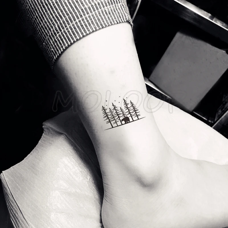 Наклейки для татуировок, медведи, птицы, аниамл, сосна, черное маленькое боди-арт, временная искусственная тату, флэш-тату для детей, девочек и мужчин