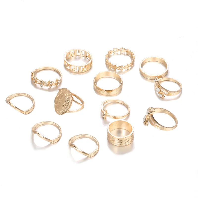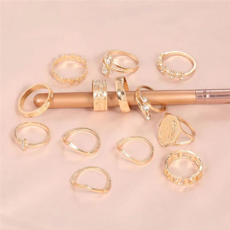 13 шт.компл. золотые кольца на пальцы средней длины для женщин, гео...