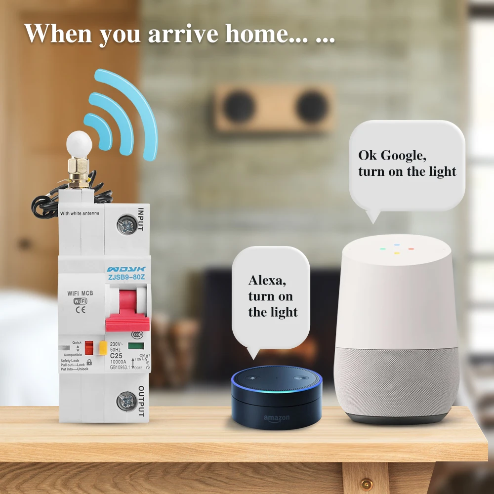 Автоматический выключатель ewelink, 1P, Wi-Fi, дистанционная защита от коротких замыканий и перегрузки, совместим с Amazon Alexa и Google home для умного дома