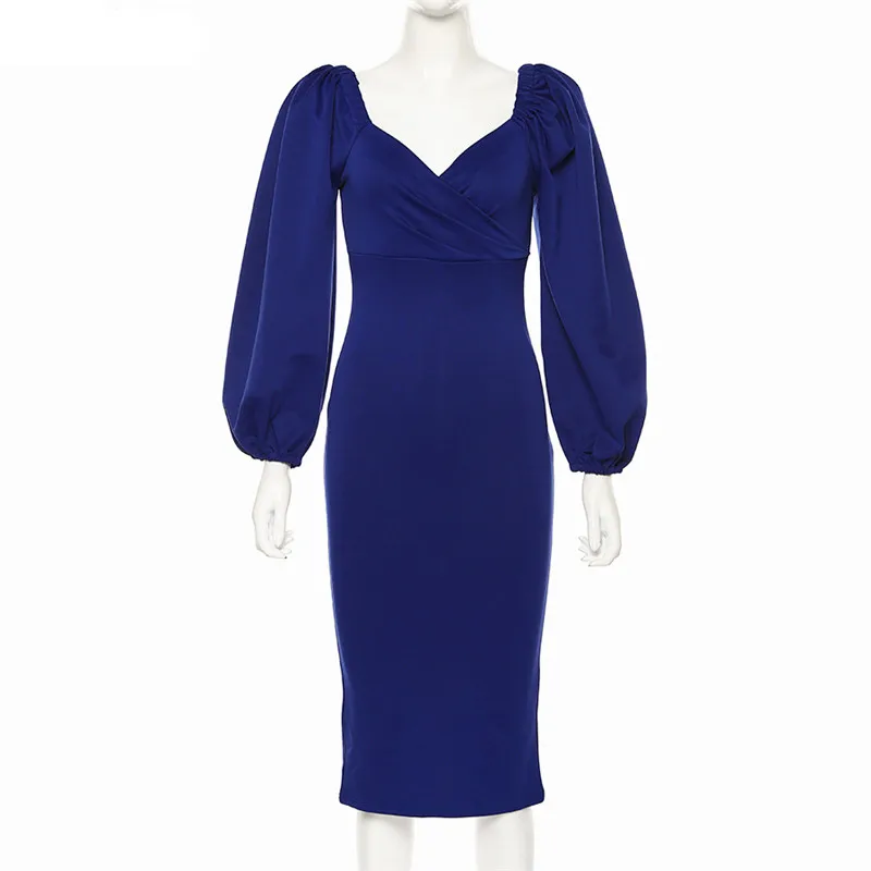 Женское платье с рукавами-фонариками Sisterlinda, однотонное облега...