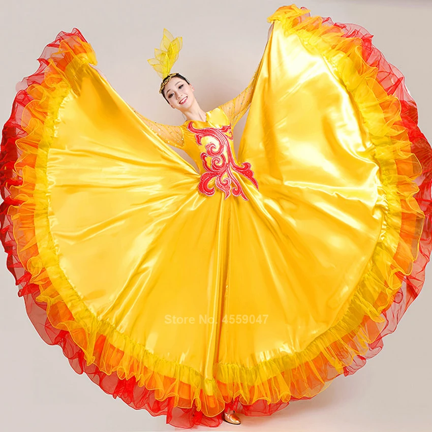 Новые юбки танцевальные для фламенко, испанская Карнавальная одежда для выступлений, костюм Цыганская юбка, женское кружевное платье Bigdance, испанское платье для хора
