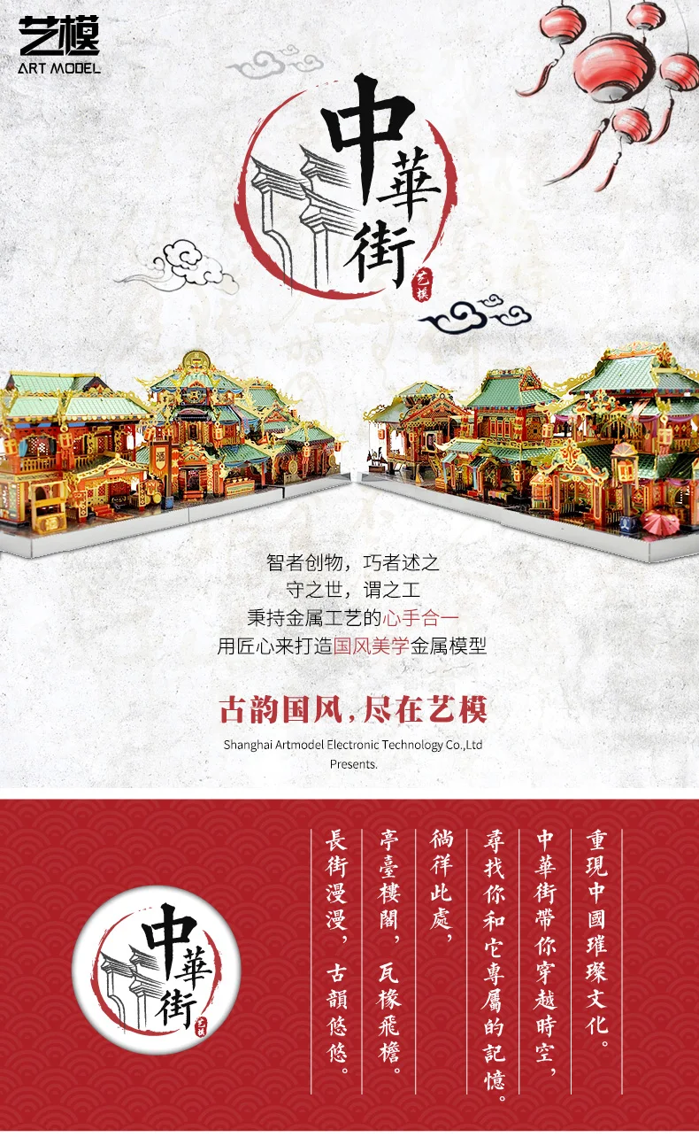 Художественная модель, 3D металлический пазл Chinatown, строительные модели, наборы сделай сам, лазерная вырезка, сборная головоломка, игрушка, настольное украшение, подарок для детей
