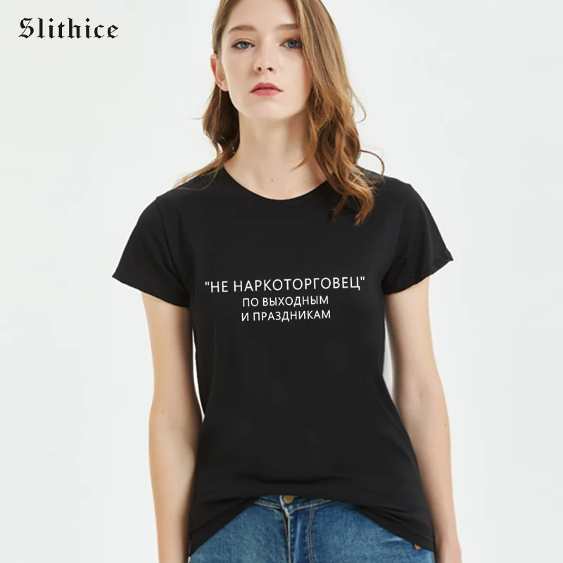 Slithice, не продавец лекарств в выходные и праздничные дни, хипстерская женская футболка, принт в виде русских букв футболка, уличная одежда, женская футболка