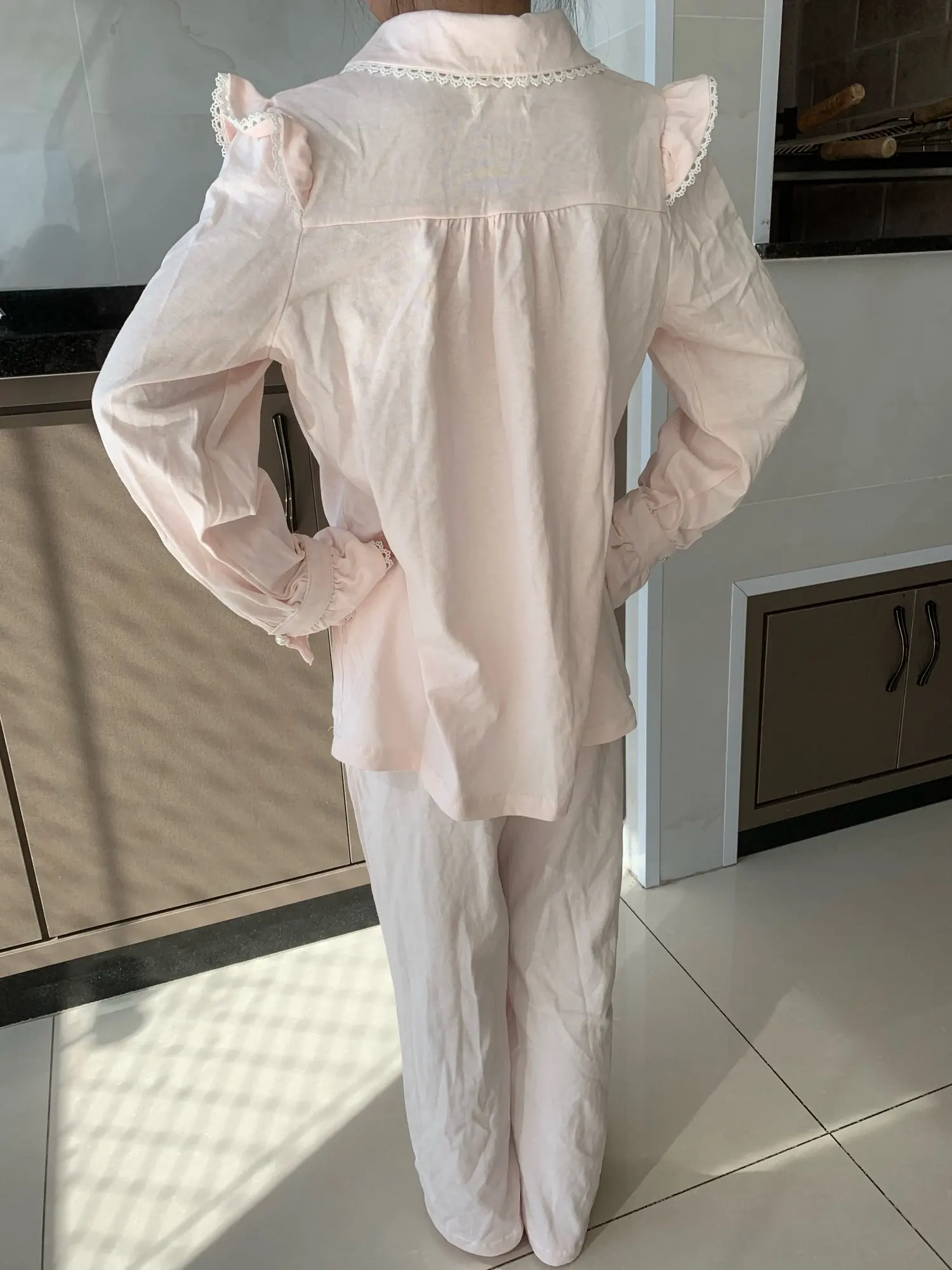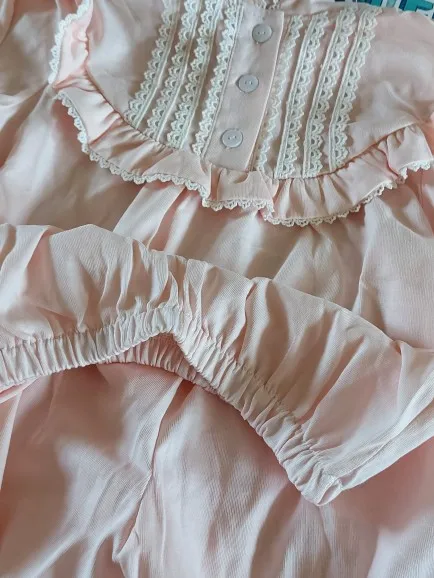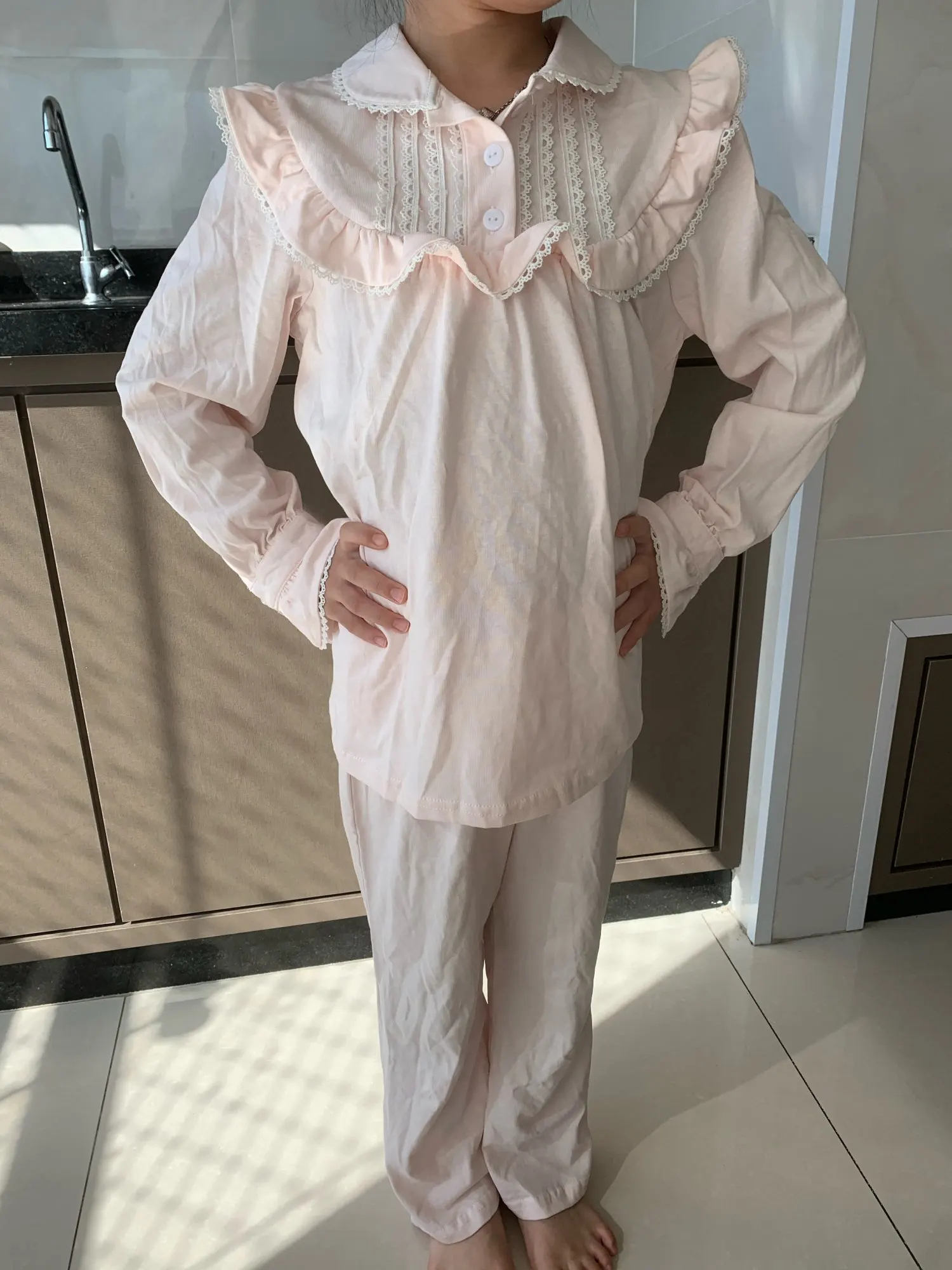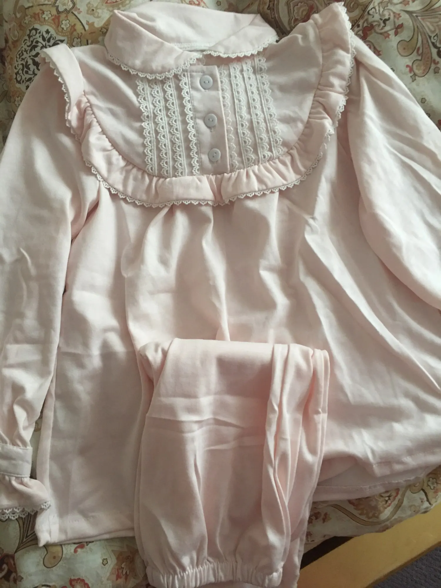 Детские пижамные комплекты в Стиле Лолита розового цвета, топы с длинными рукавами + штаны, Винтажный кружевной пижамный комплект для малышей, Королевский стиль, одежда для сна