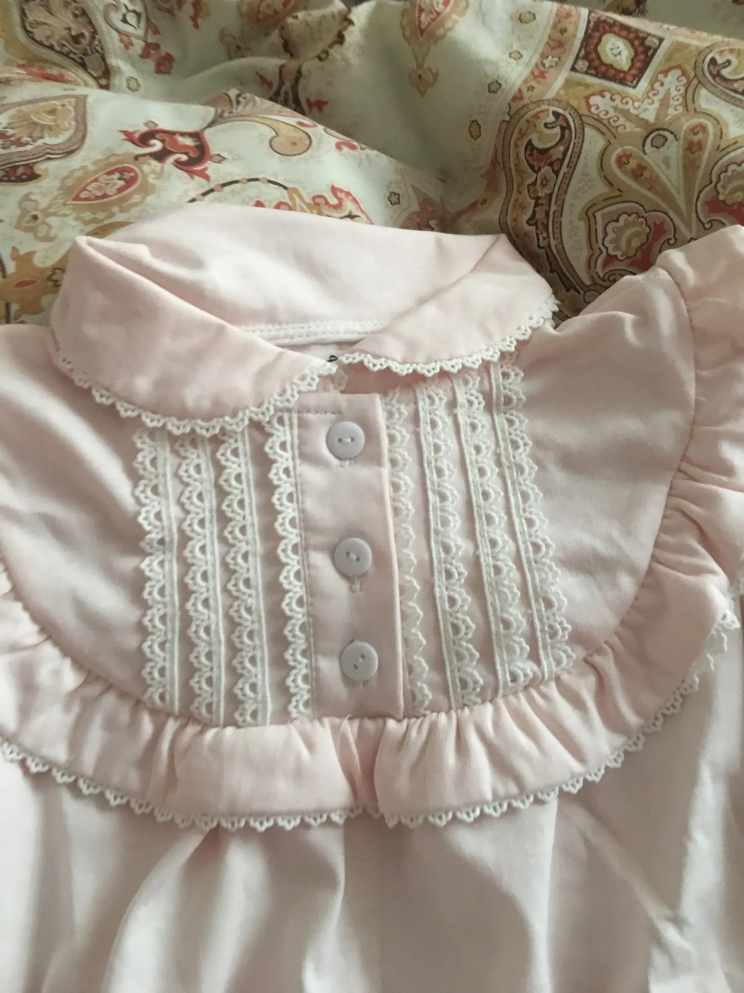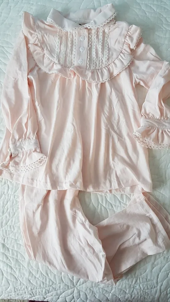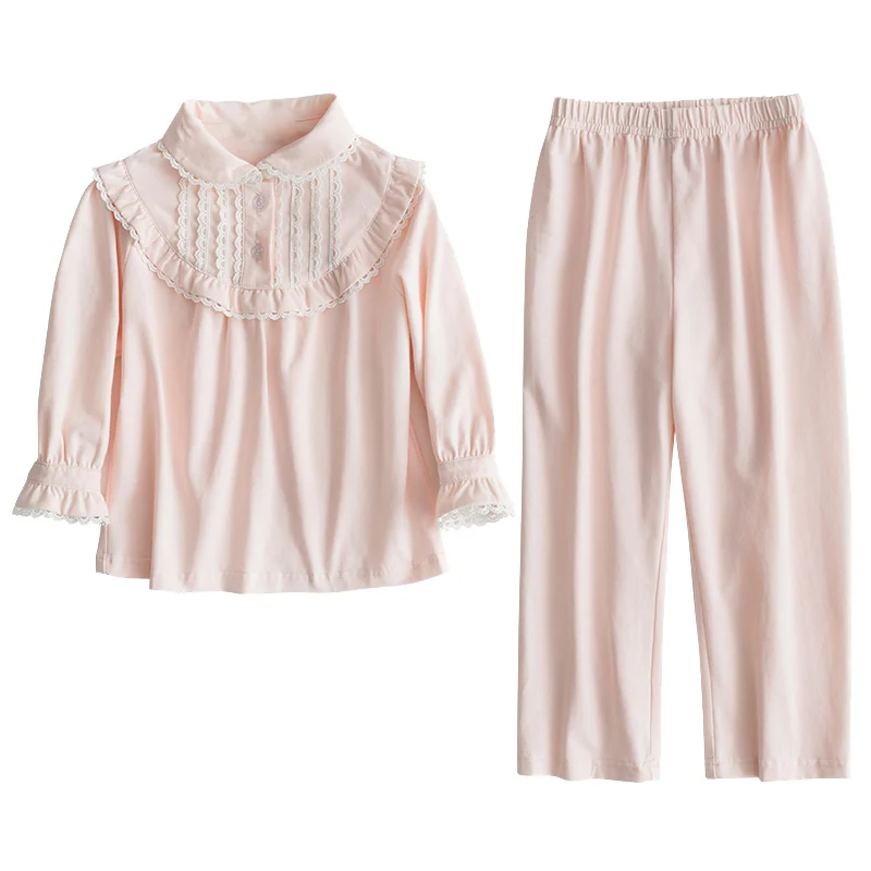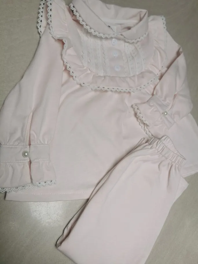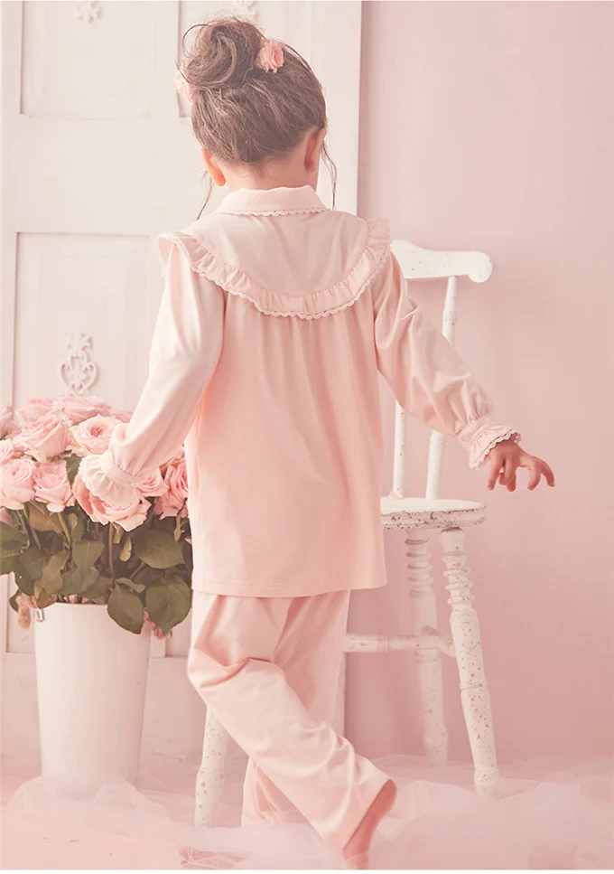Пижамный комплект розового цвета для девочек, топ с отложным воротником и штаны, винтажный пижамный комплект для малышей, домашняя одежда для сна в Королевском Стиле