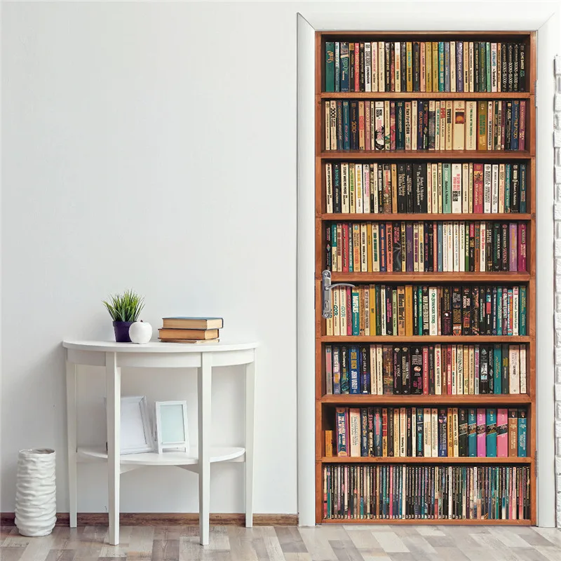 Настенная бумага из ПВХ с принтом 3D озеро море книжная полка наклейки на дверь домашний Декор Картина самоклеящаяся Водонепроницаемая настенная бумага для спальни