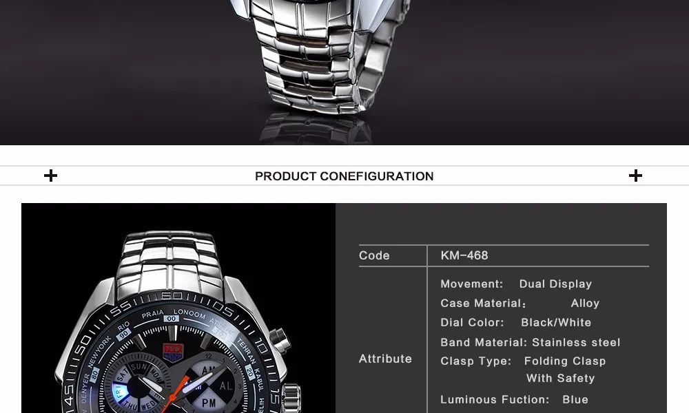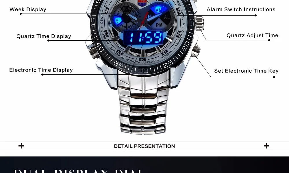 Часы мужские кварцевые, водонепроницаемые, с двойным дисплеем, из н...