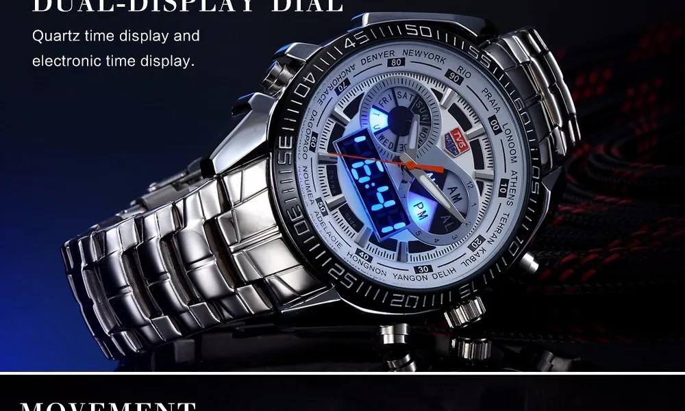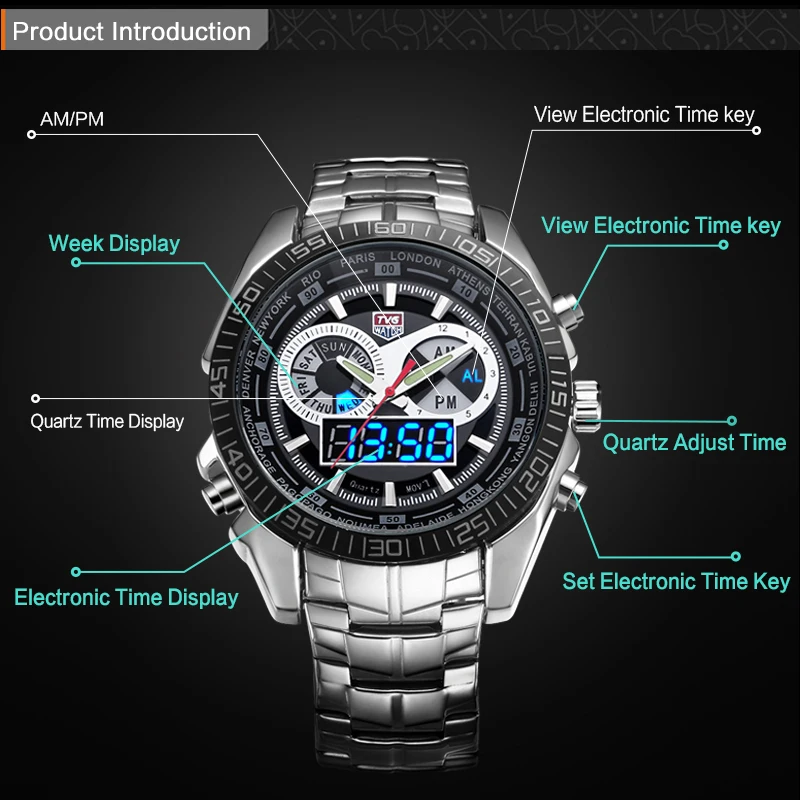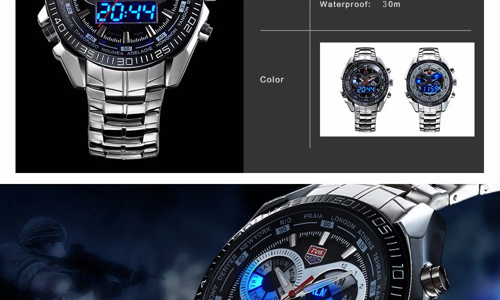 TVG, мужские часы, уникальные, с синим светодиодным дисплеем, анало...