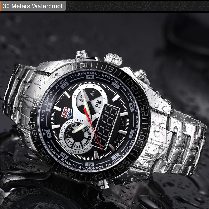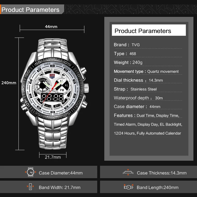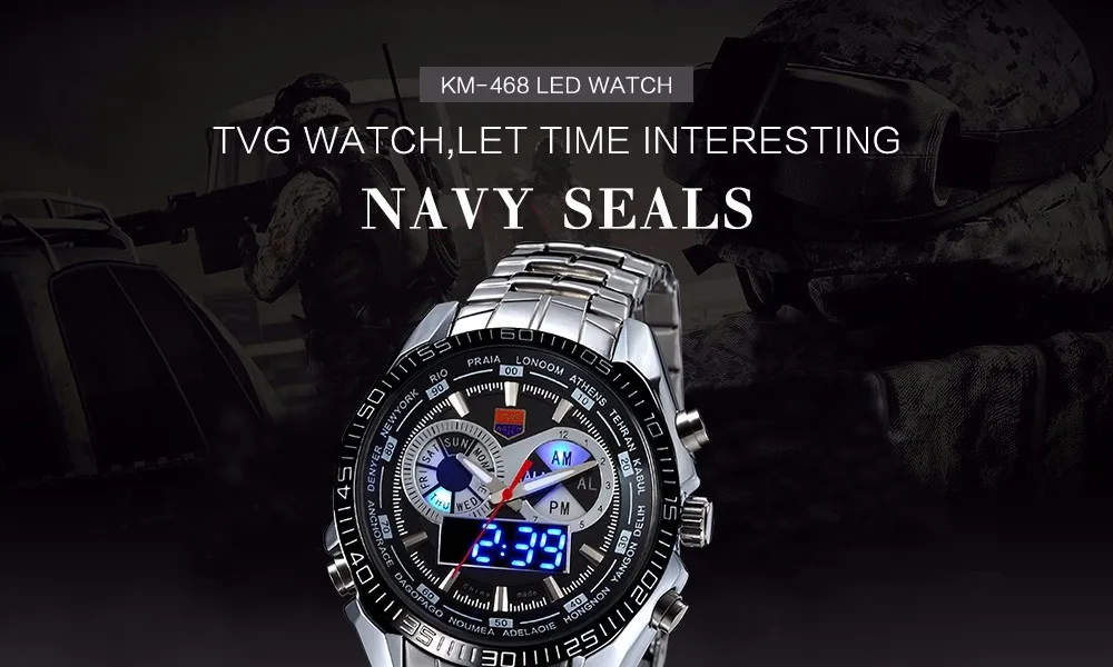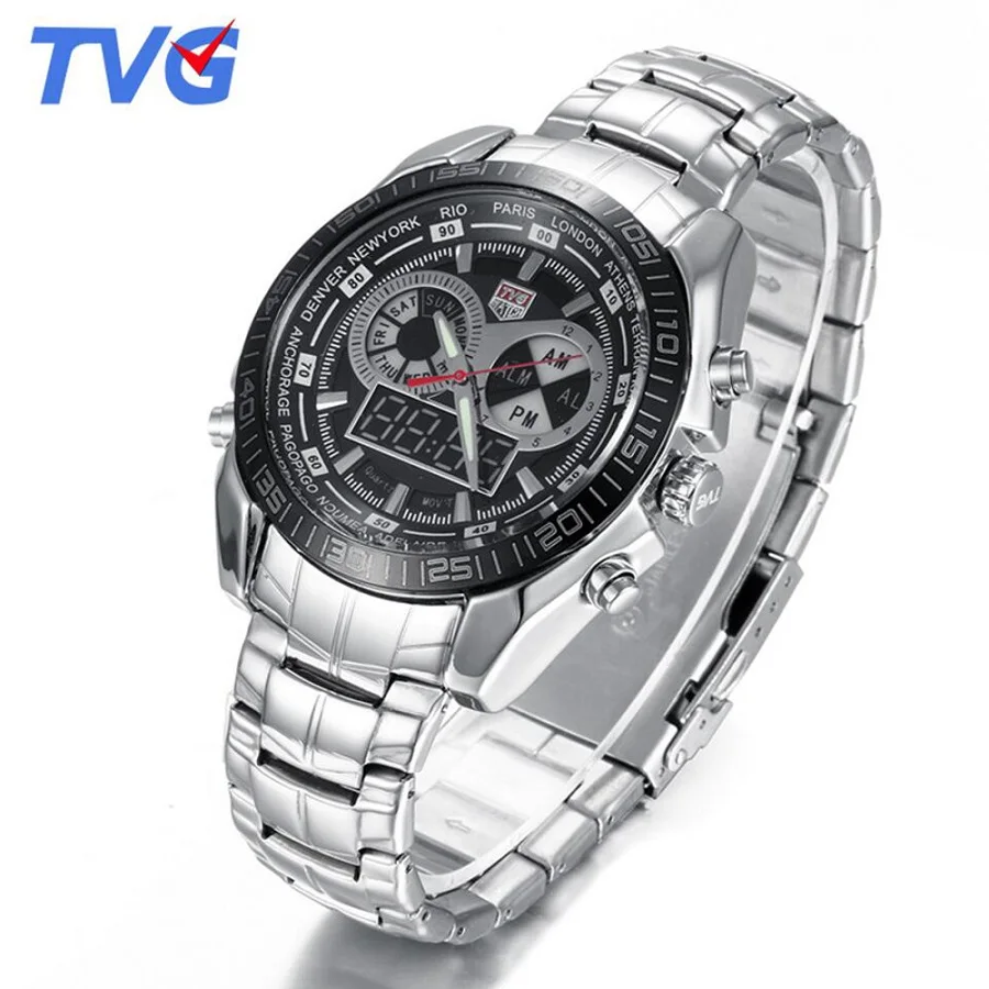 Цифровые часы мужские TVG 468 мужские спортивные часы модные двойные светодиодные стрелки военные армейские мужские часы водонепроницаемые цифровые часы