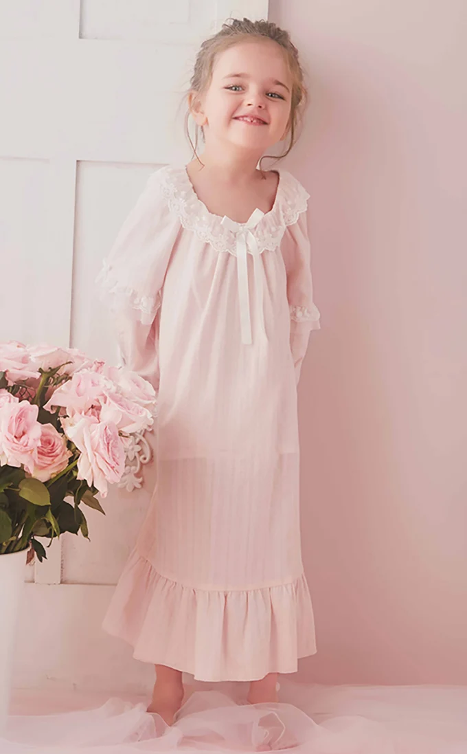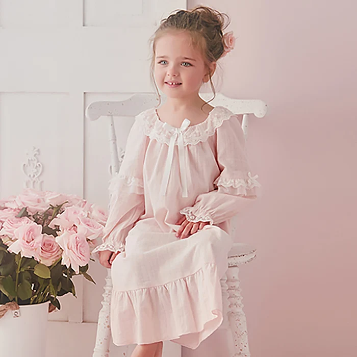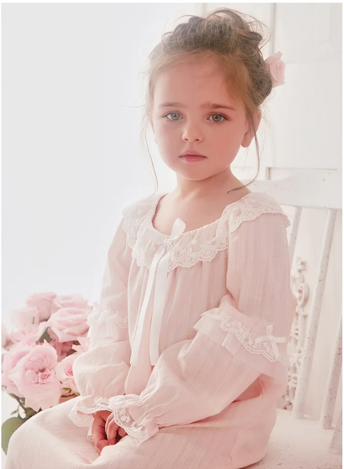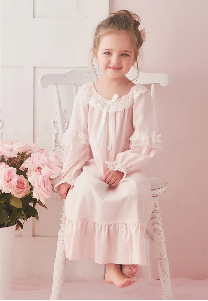 Детское Хлопковое платье в стиле "Лолита", розовые рубашки для сна в стиле принцессы, винтажная кружевная ночная рубашка для девочек, королевская ночная рубашка для малышей, одежда для отдыха