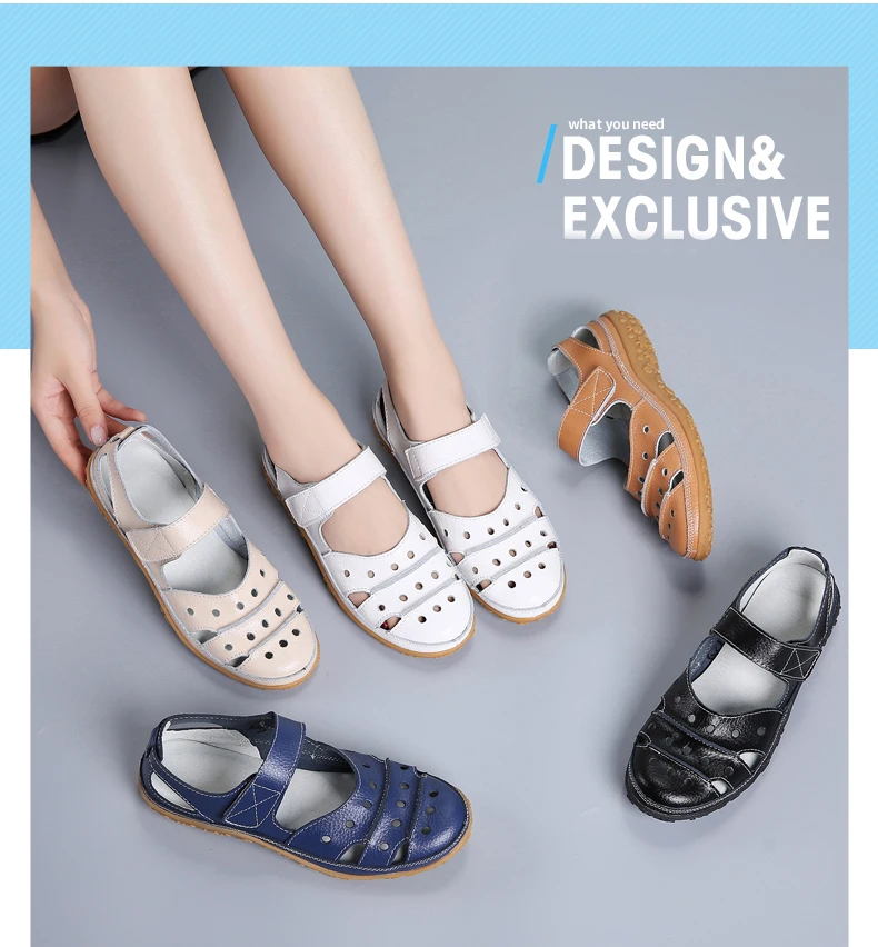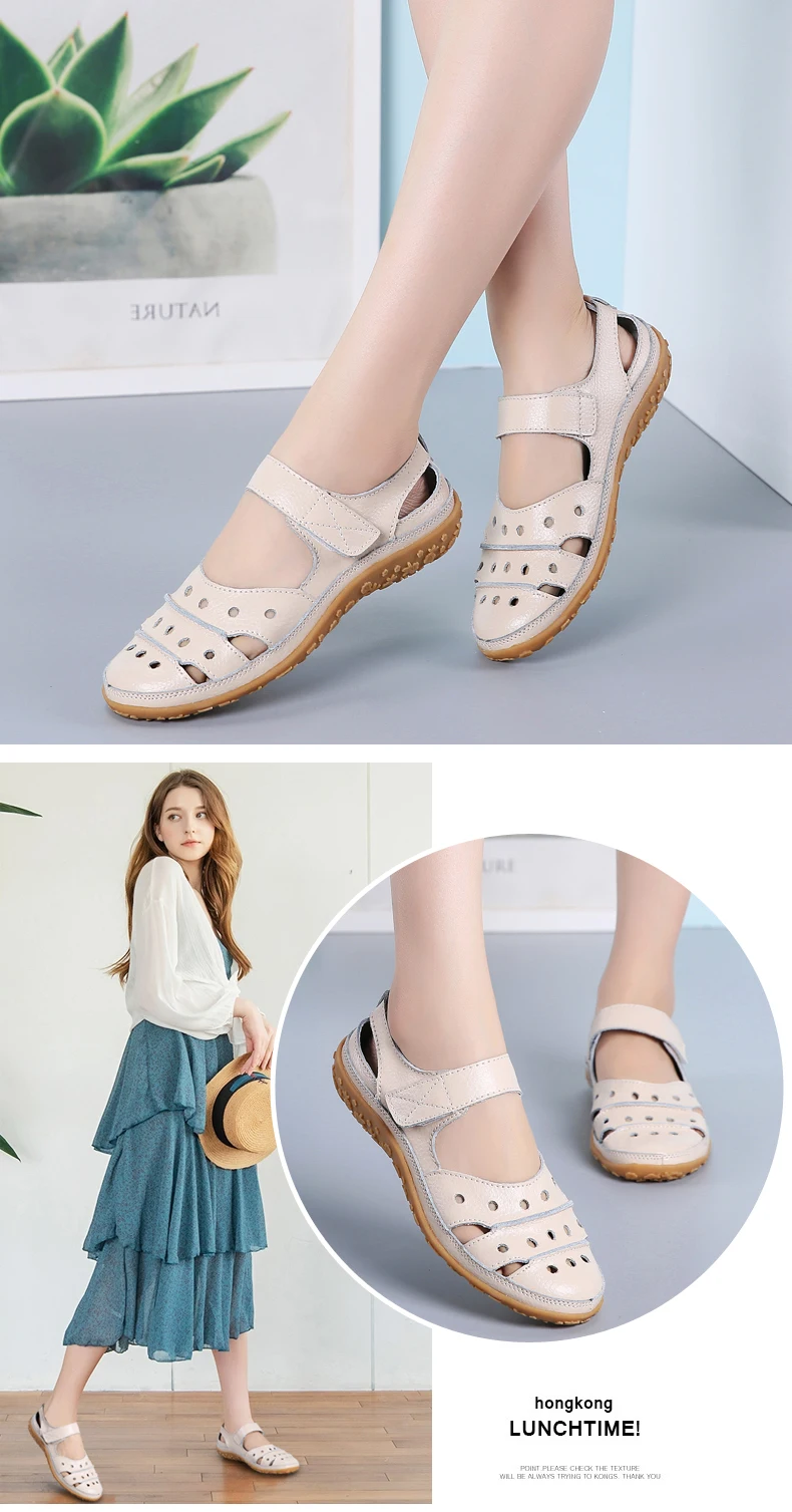 Женские кожаные сандалии, удобная Пляжная уличная женская обувь, новинка 2020, Модные женские повседневные уличные женские кроссовки большого размера