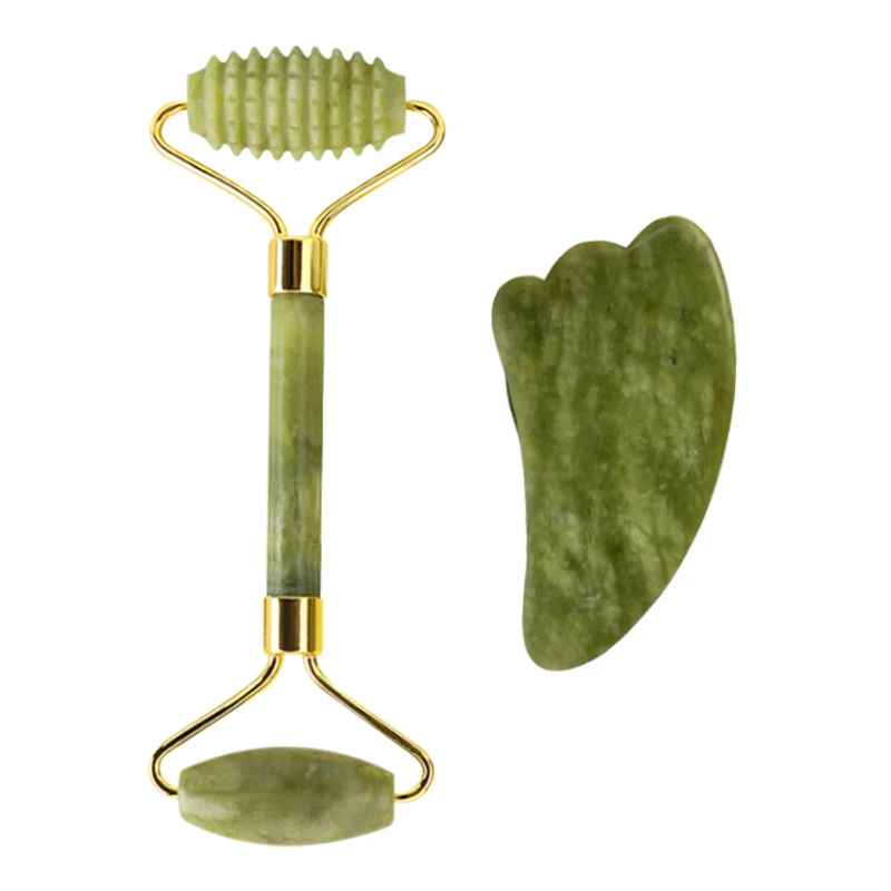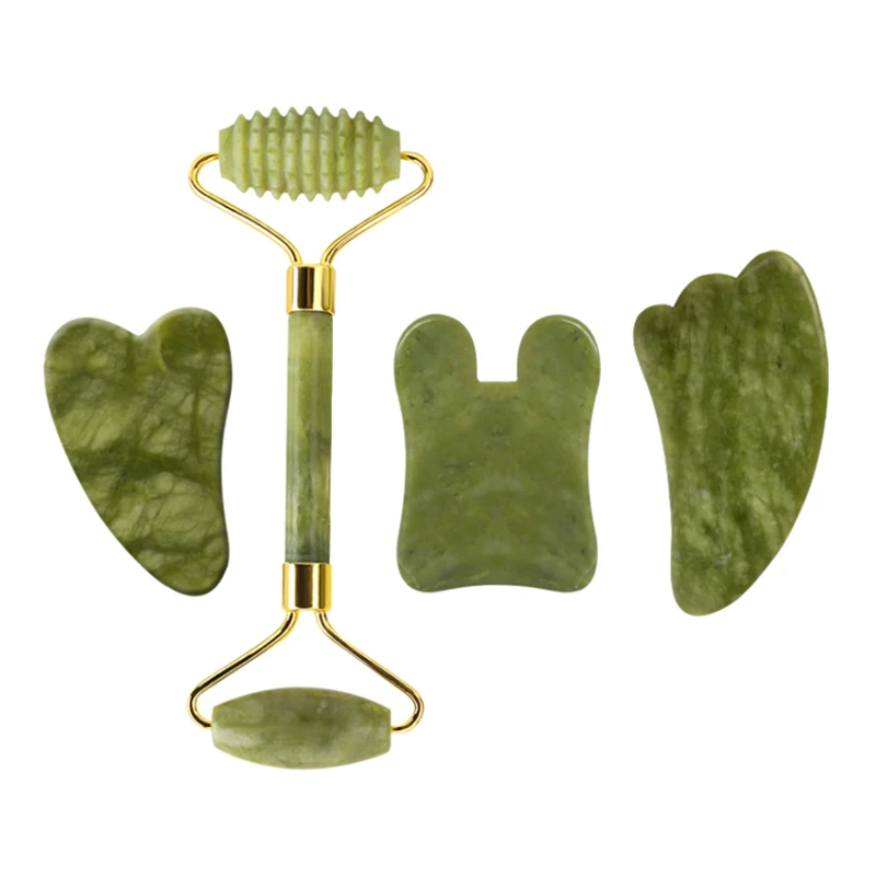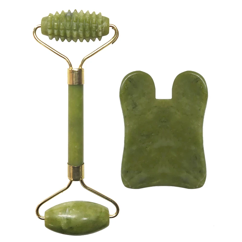 Натуральный нефритовый валик, набор досок Guasha, массажер для лица, настоящий камень, массажный инструмент для лица, гуашь, скребок, Нефритовый ролик, набор инструментов Guasha