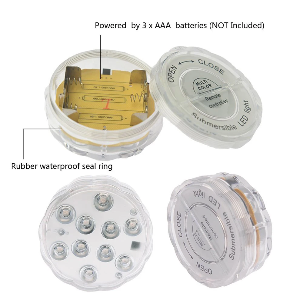 Погружной RGB-светильник с пультом дистанционного управления, 10 шт.