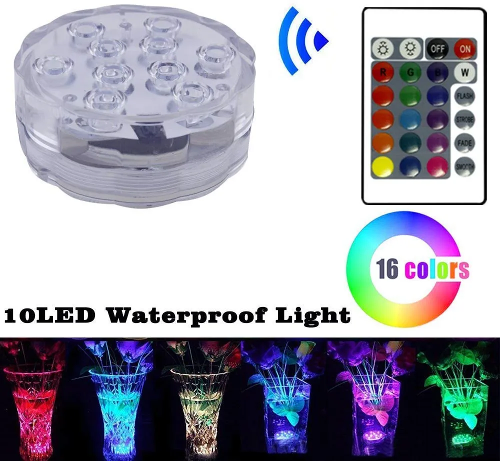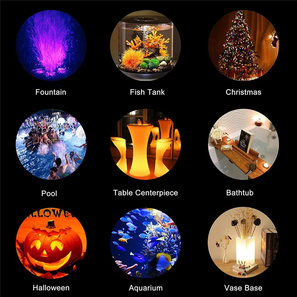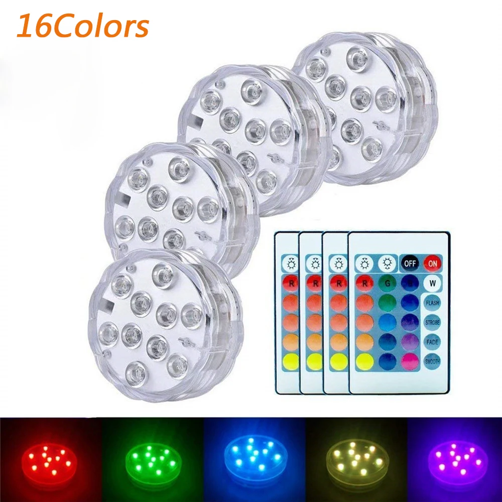 Многоцветный погружной светодиодный светильник с дистанционным управлением IP67, водонепроницаемый подводный чайный светильник для вазы, сада, бассейна, свадьбы