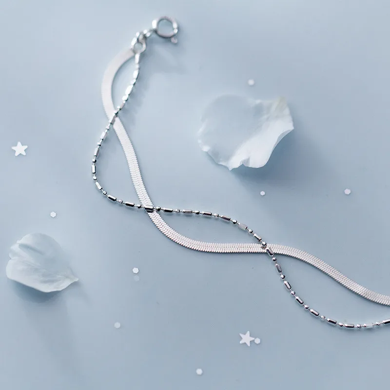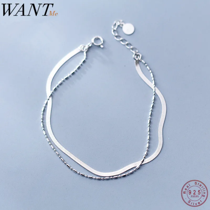 Женский браслет-цепочка WANTME, двойные бусины из 100% серебра 925 пробы, вечерние аксессуары для свадьбы, минимализм