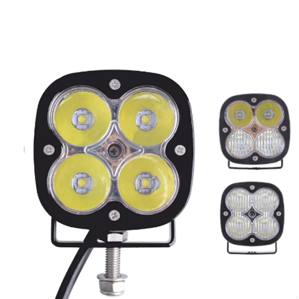 Комбинированный прожектор 2 дюйма 40 Вт, квадратный светодиодный фонарь дальнего света для внедорожников, грузовиков, внедорожников, квадроциклов, лодок, светодиодный рабочий светильник онарь с желтой крышкой