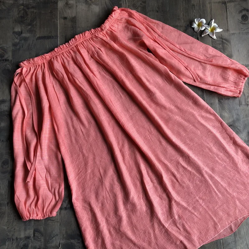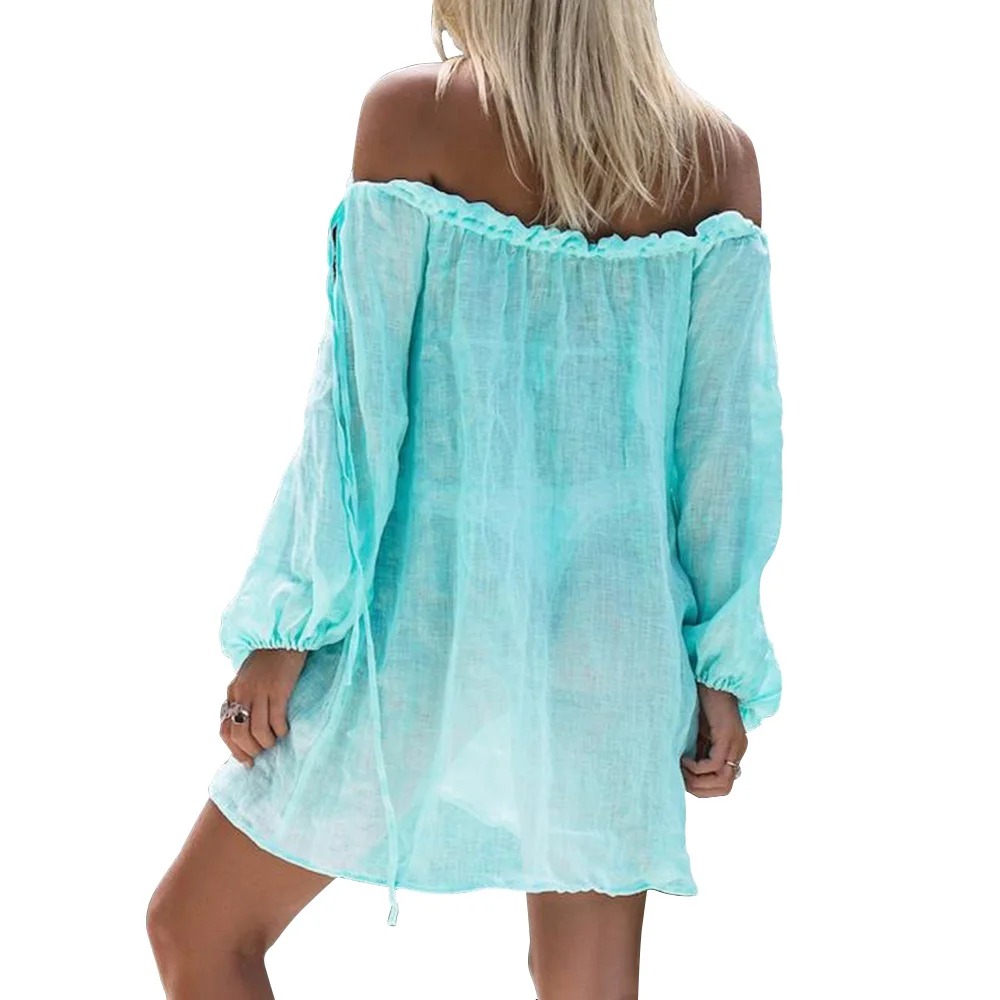Новинка, Пляжное платье с открытыми плечами, бикини, накидка, однотонное саронг, накидка для плавания, пляжная одежда с длинными рукавами, Женская туника с завязками, летний купальник
