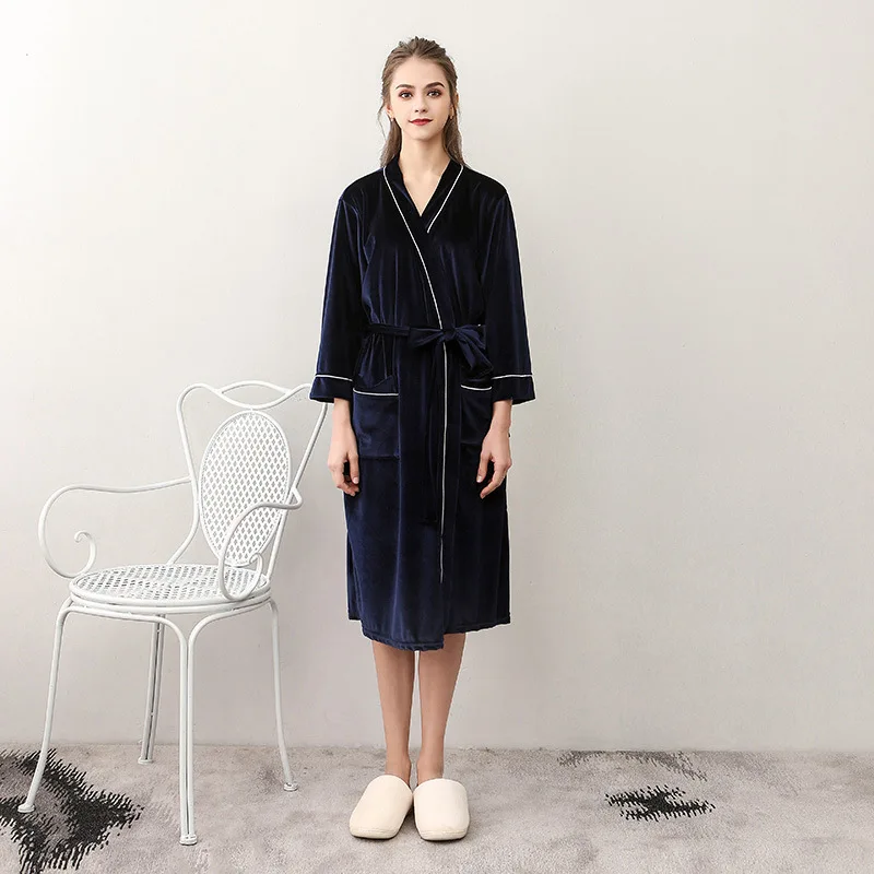 Халат мягкий бархатный с V-образным вырезом для мужчин и женщин