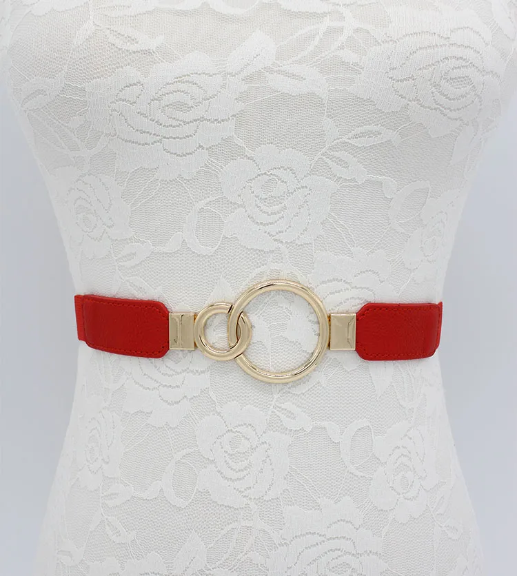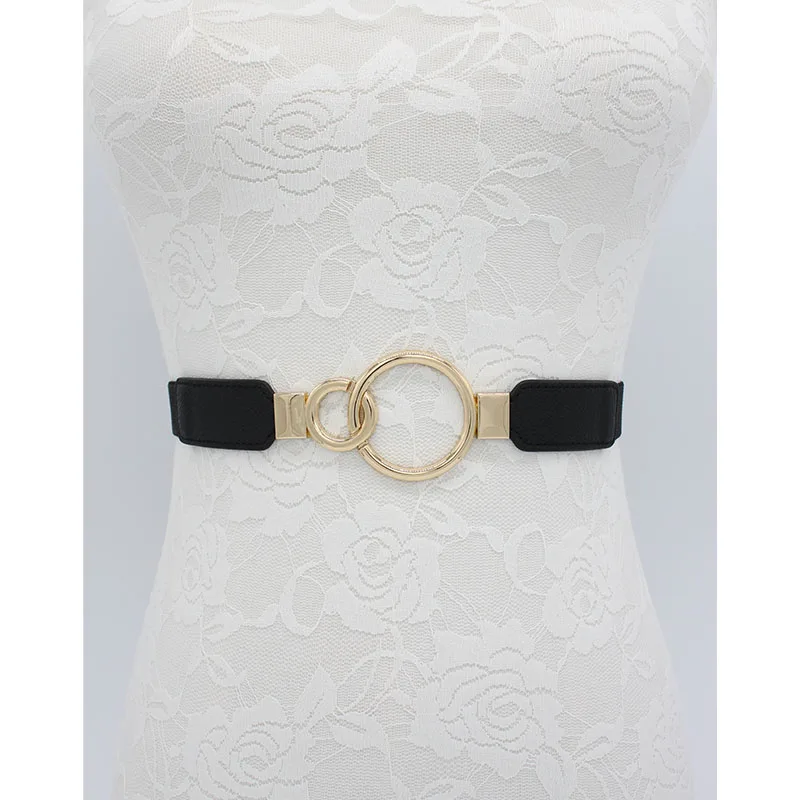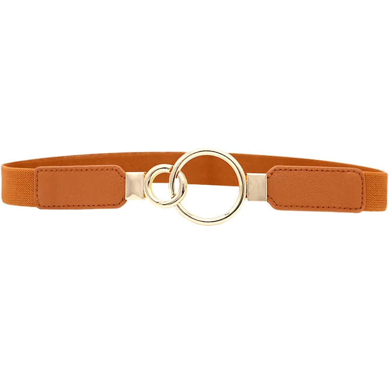 Женский двойной пояс из искусственной кожи, тонкий эластичный пояс золотого цвета, круглая пряжка