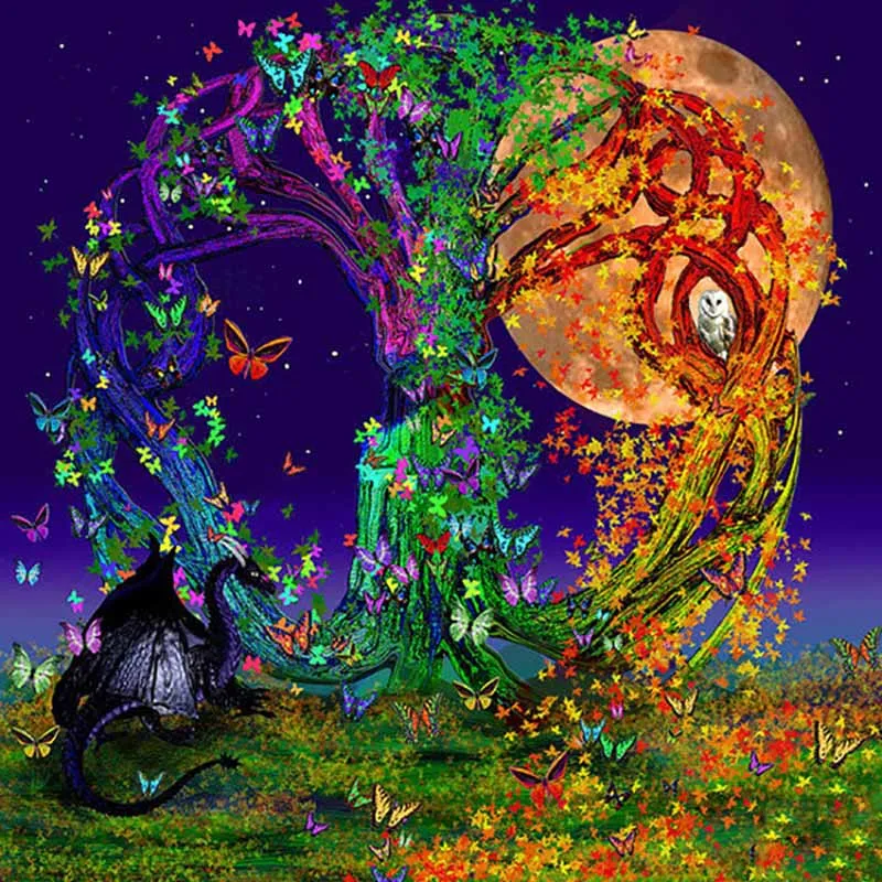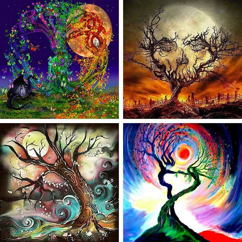 Полноразмерная Алмазная 5d-картина сделай сам, вышивка деревьями, ветвями, алмазная вышивка, абстрактный пейзаж, луна, ручная работа, мозаика, домашний декор, художественный подарок Z78