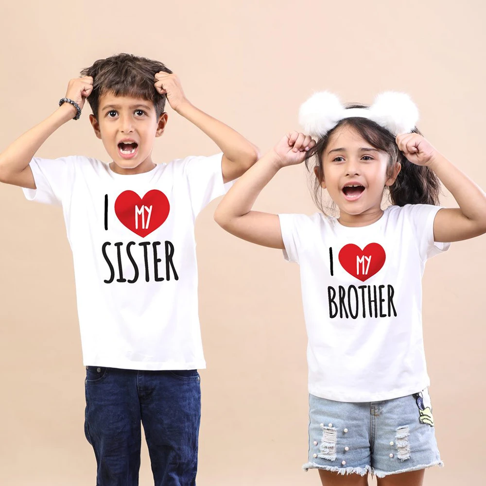 Детская одинаковая футболка с надписью I Love My Sister Brother топы для мальчиков и девочек, летняя футболка с короткими рукавами для малышей повседневная детская футболка для всей семьи