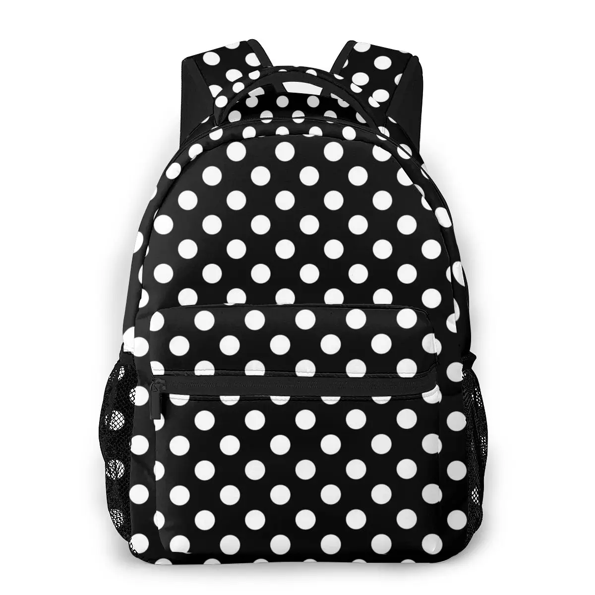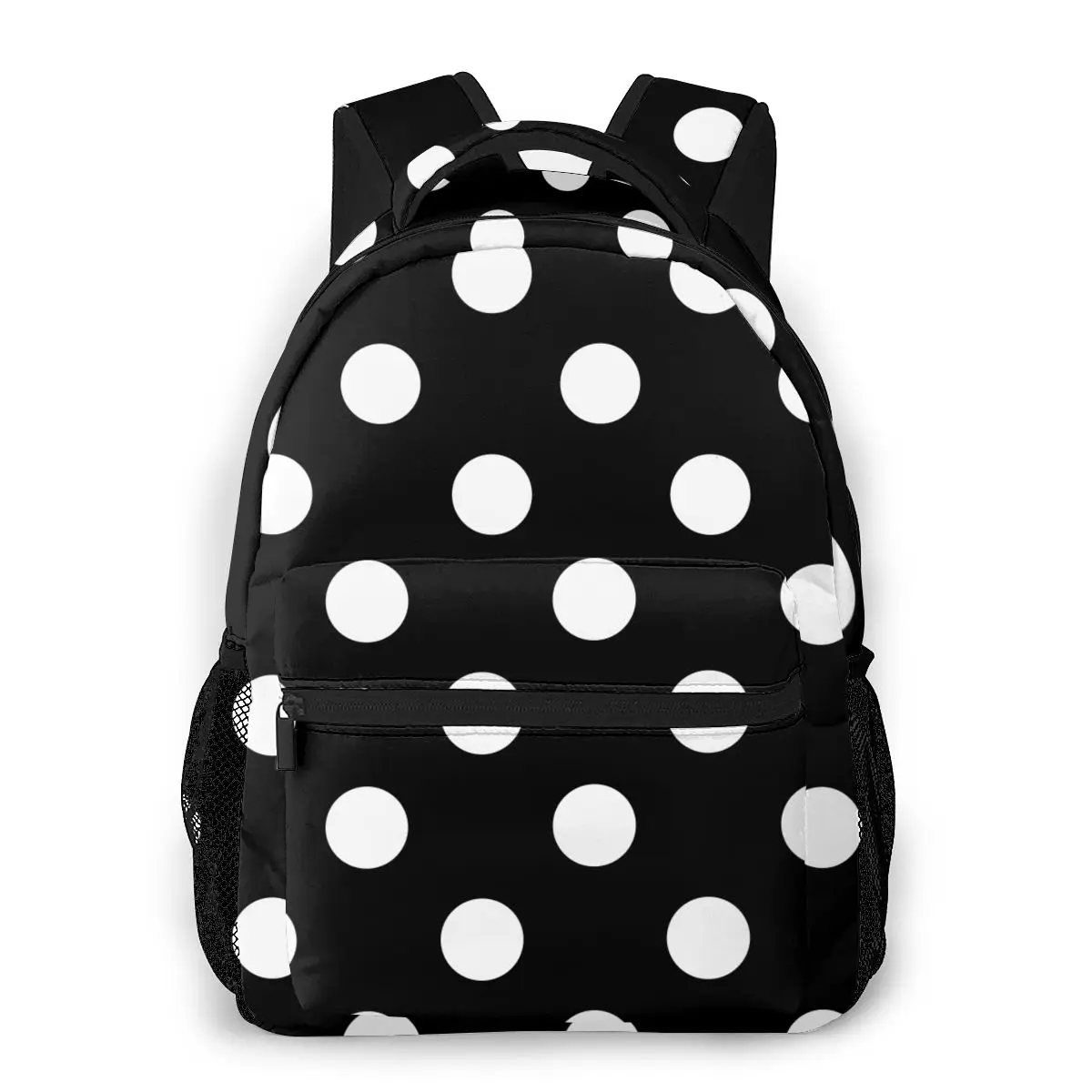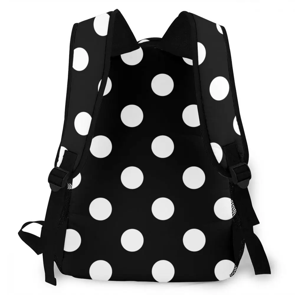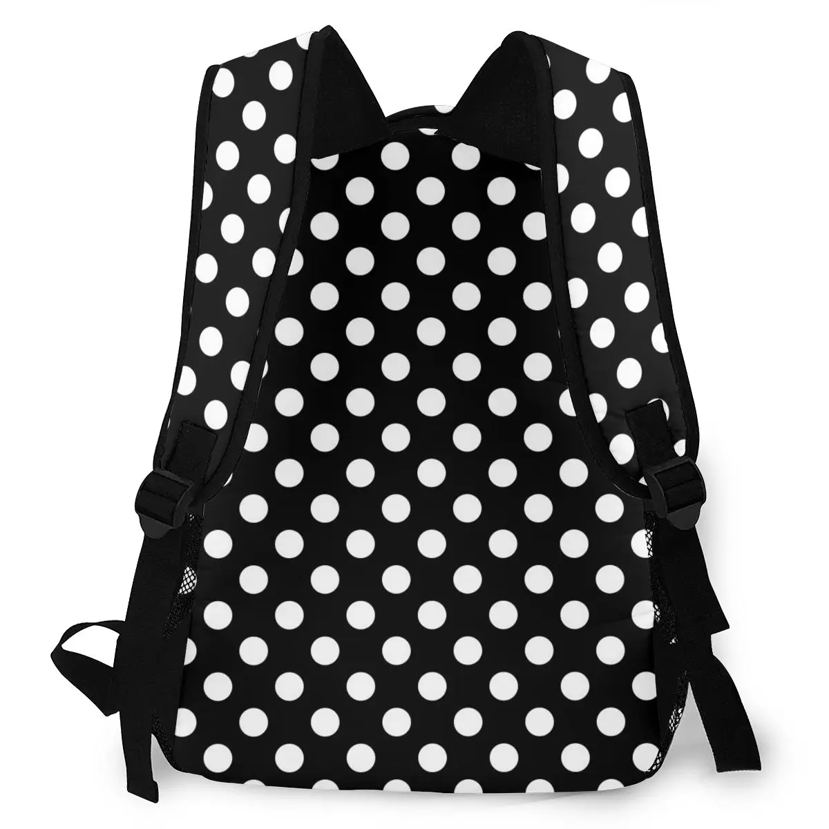 Рюкзак женский, школьная сумка в черный, белый горошек, для путешес...