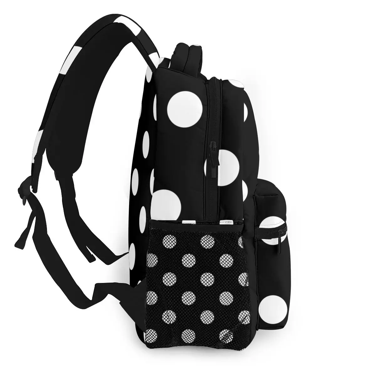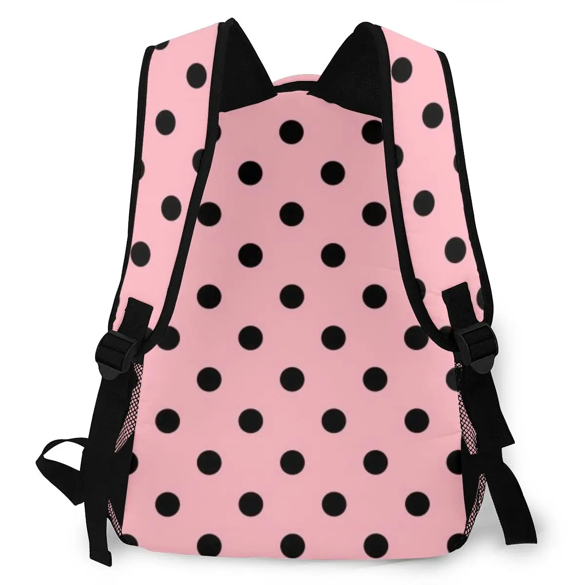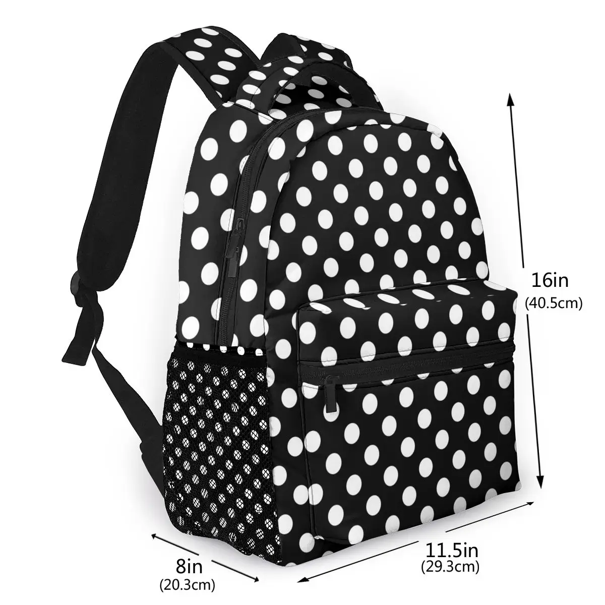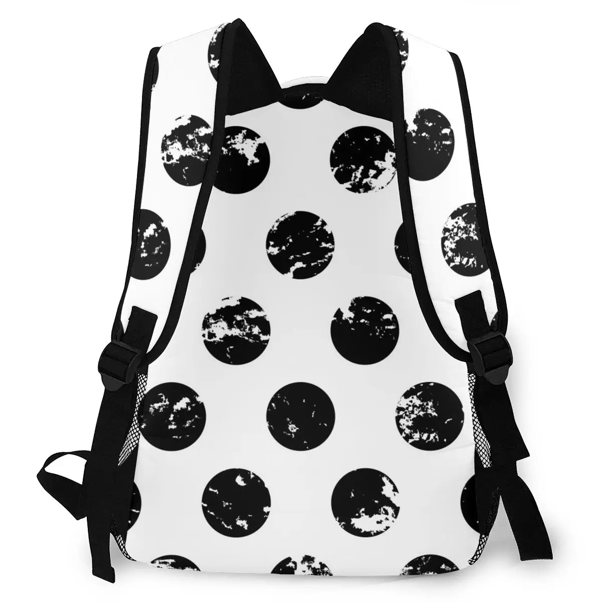 Рюкзак женский, школьная сумка в черный, белый горошек, для путешес...
