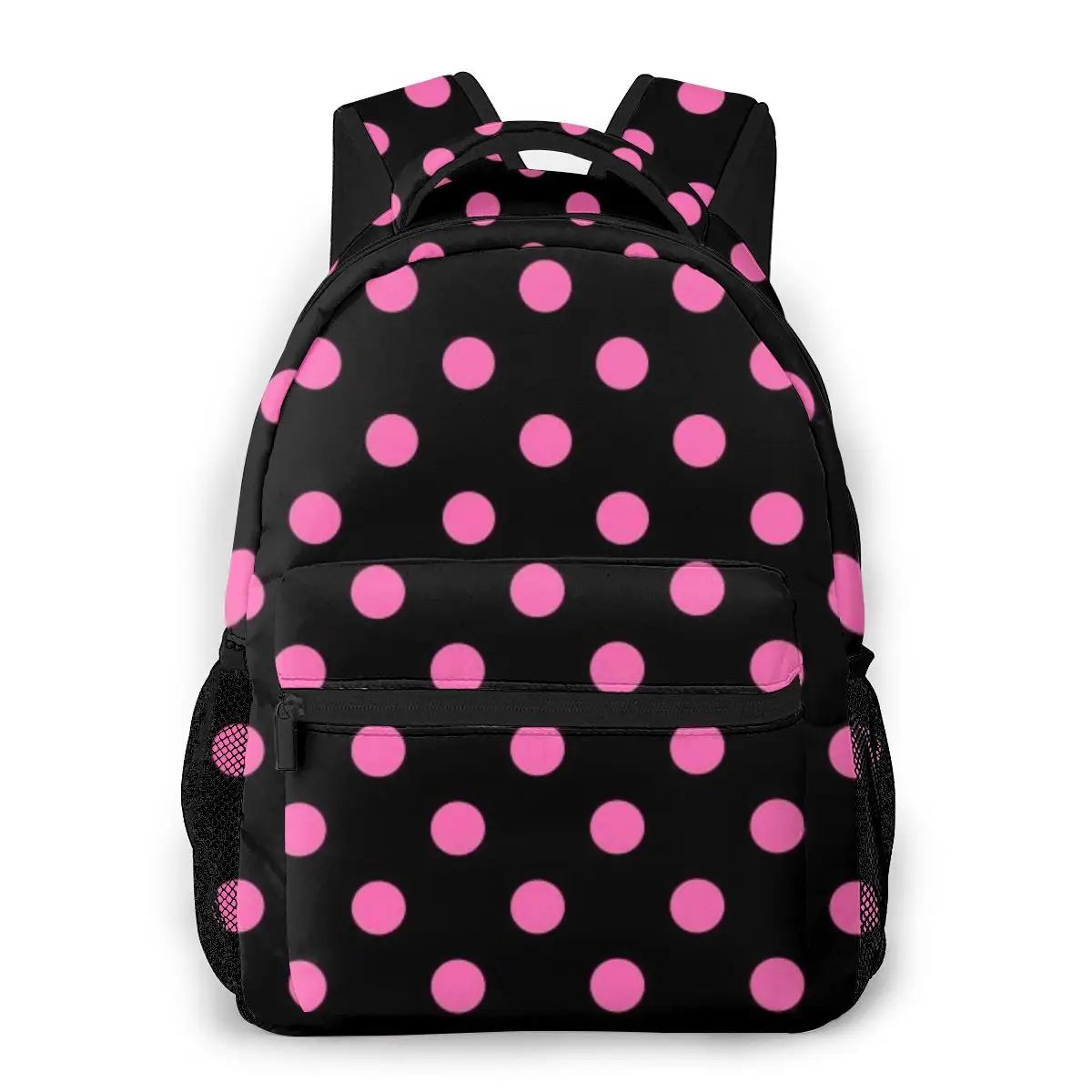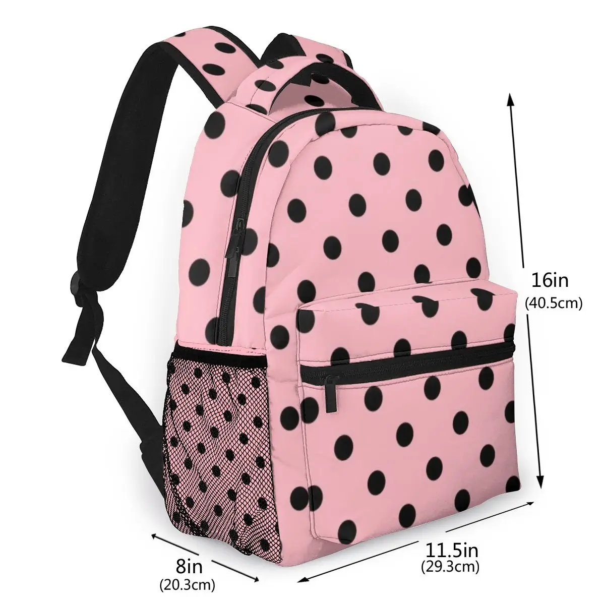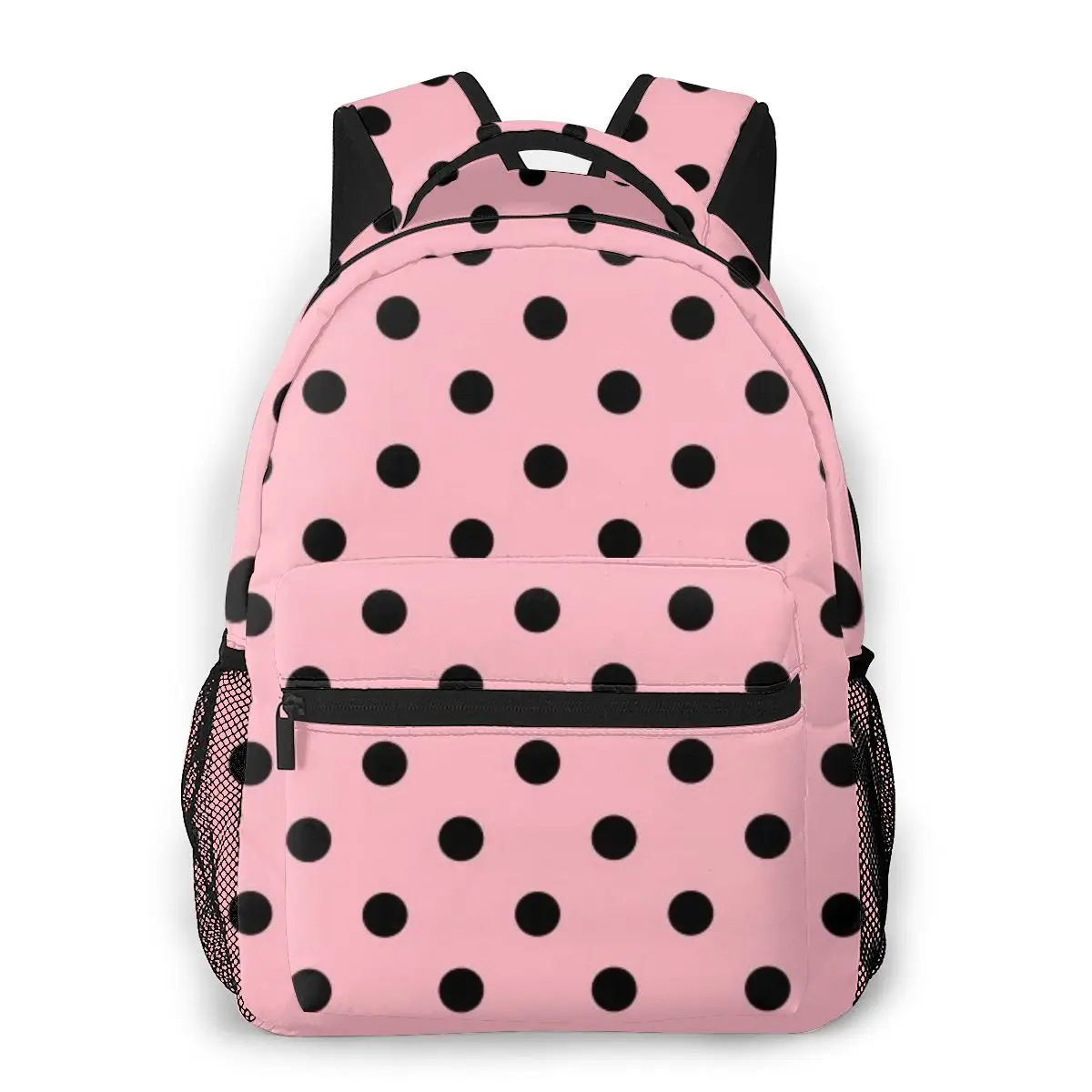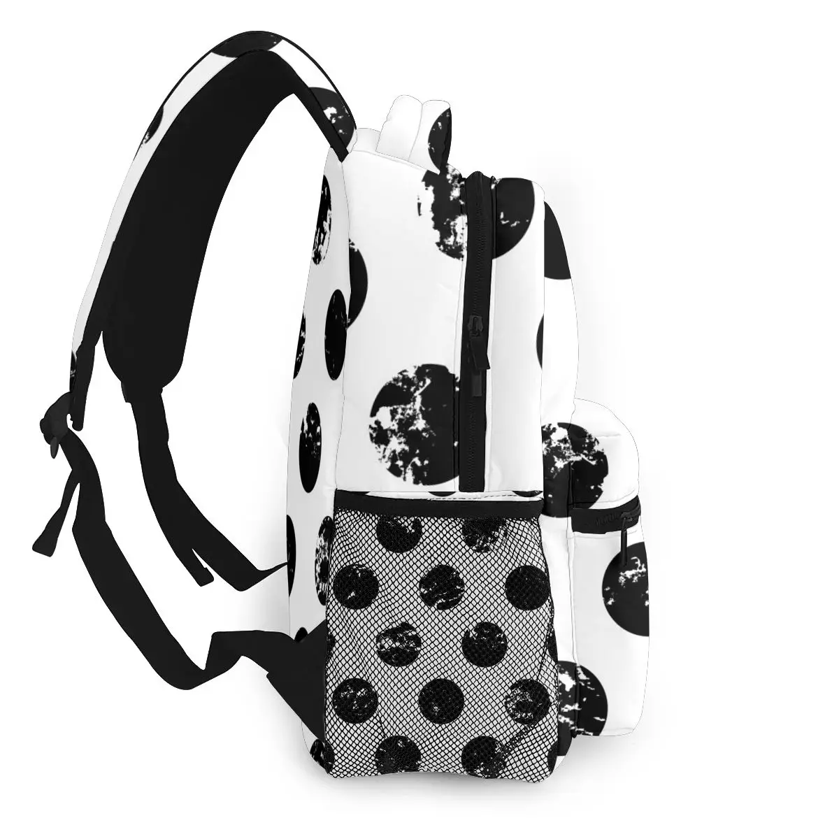 Рюкзак женский, школьная сумка в черный, белый горошек, для путешес...