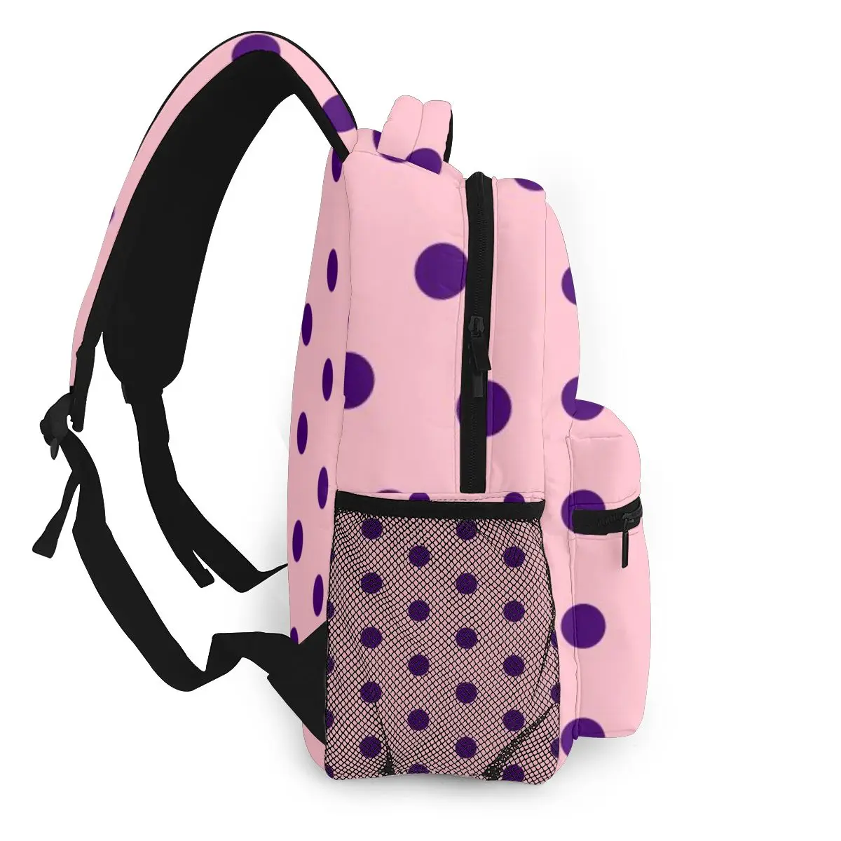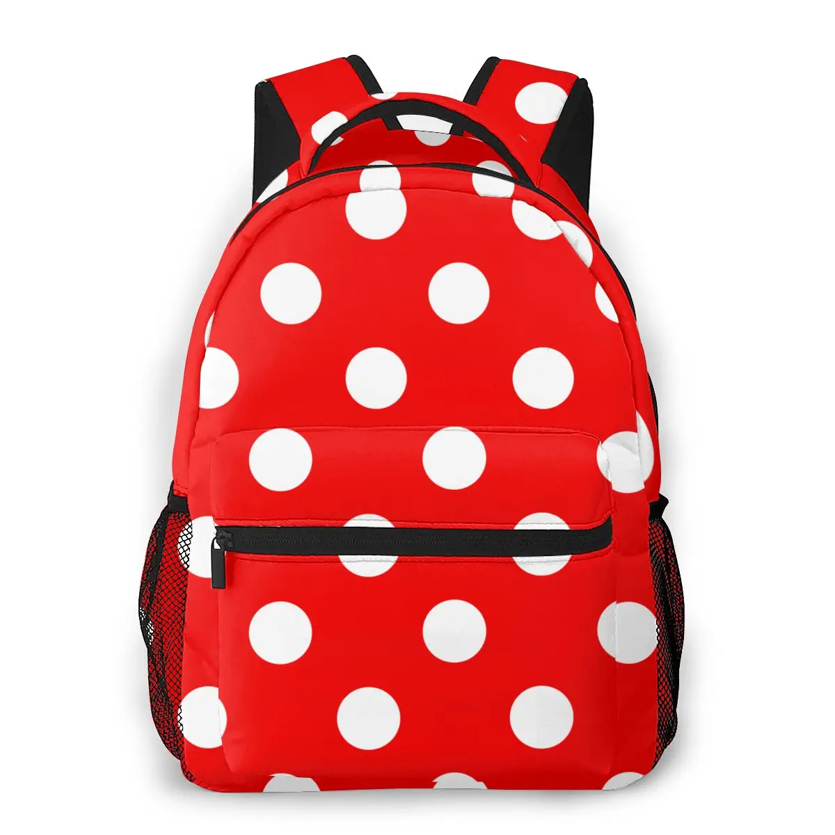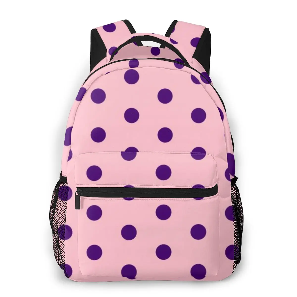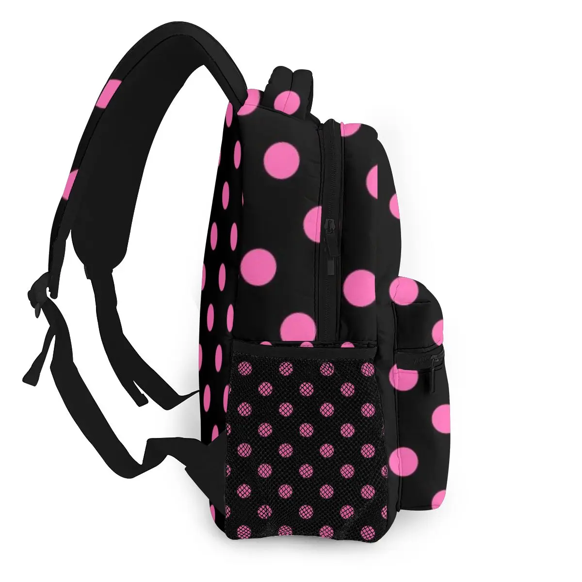 Рюкзак женский, школьная сумка в черный, белый горошек, для путешес...
