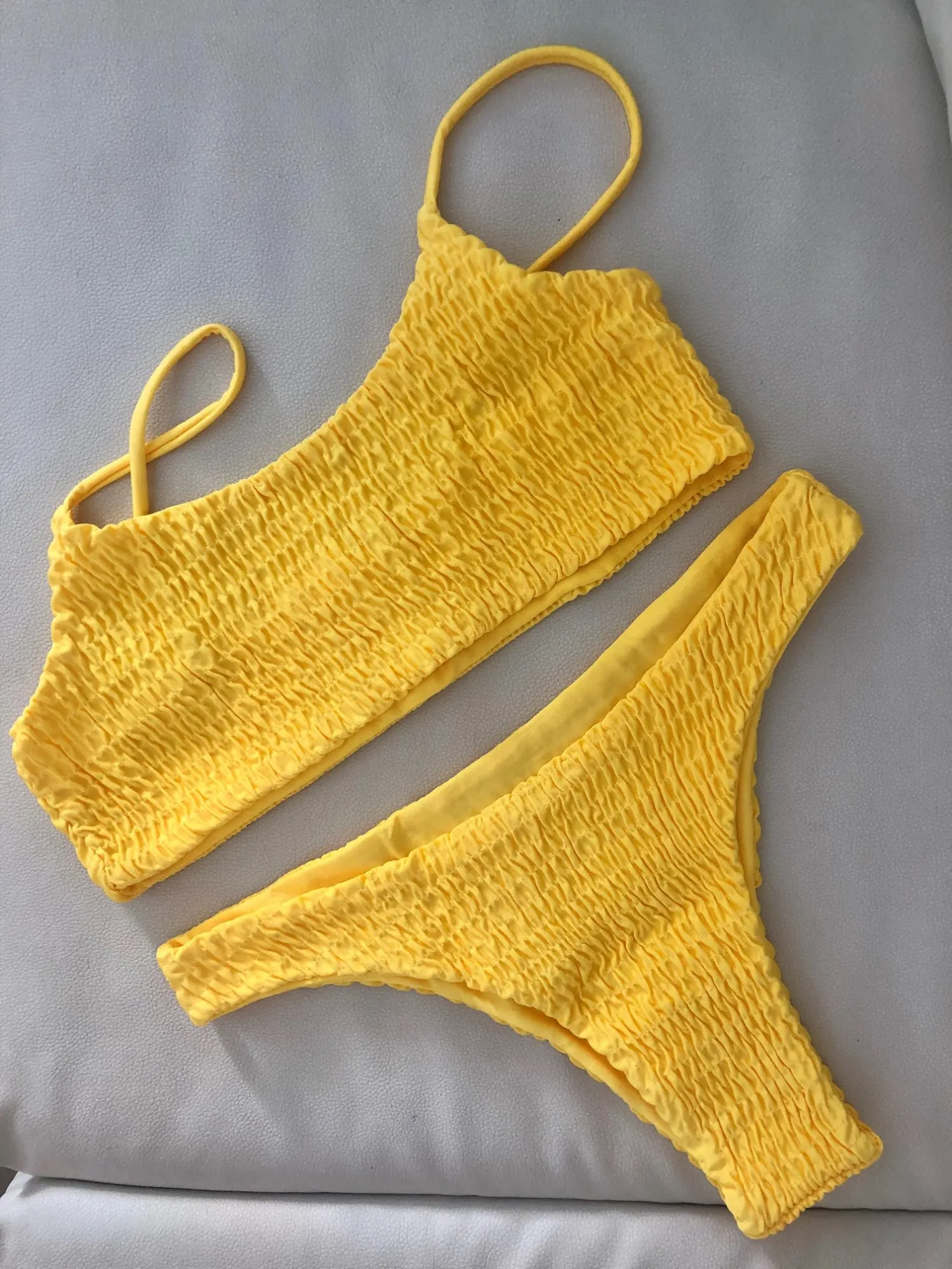 Комплект бикини женский с чашками пуш-ап, пикантный плиссированный треугольный бюстгальтер с подкладкой, стринги, комплект из 2 предметов, купальник, пляжный купальный костюм, купальники