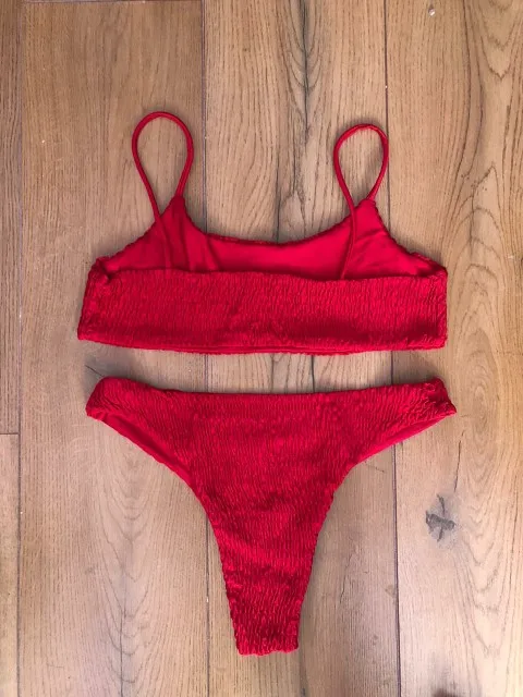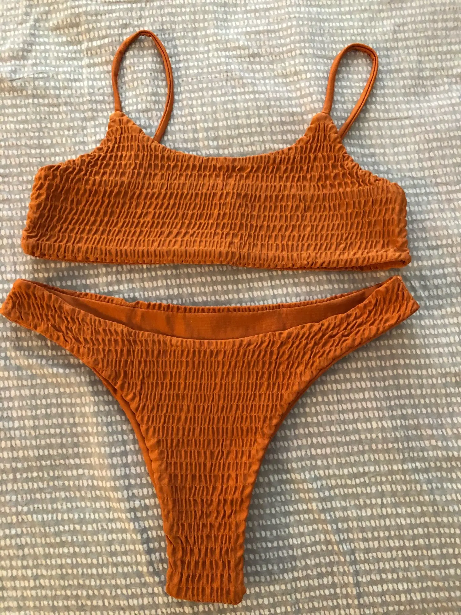 Бикини отличного качества, и цвет такой же, как на картинке. Тем не менее, бюстгальтер не проложен, поэтому он не очень пуш-ап, как указано в рубрике. Доставка была быстрой, продавец отправил посылку через два дня после размещения заказа.
