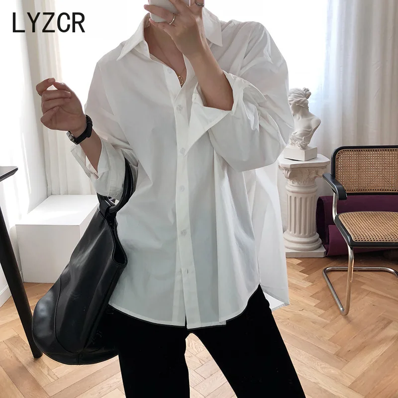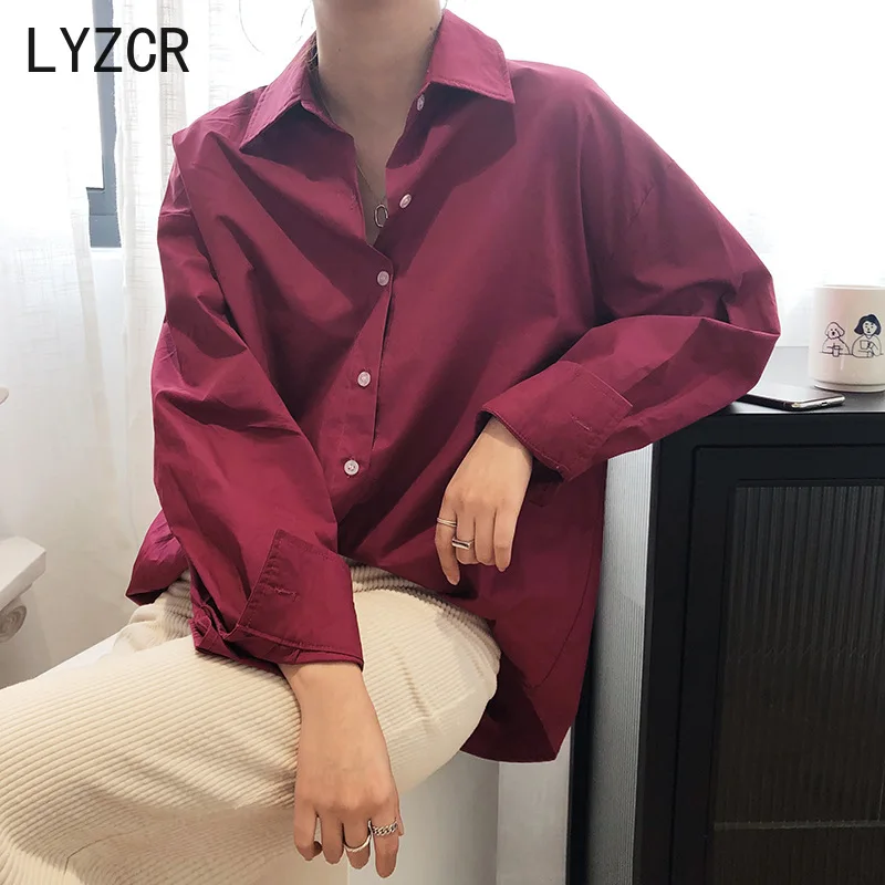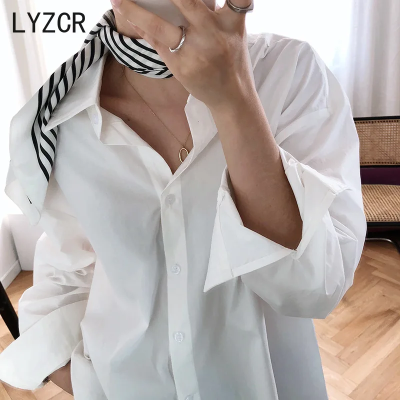 Белая рубашка-бойфренд для женщин, хлопковые блузки с длинным рукавом, синяя блузка на пуговицах, рубашка, Женская свободная офисная белая блузка, весна-осень